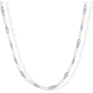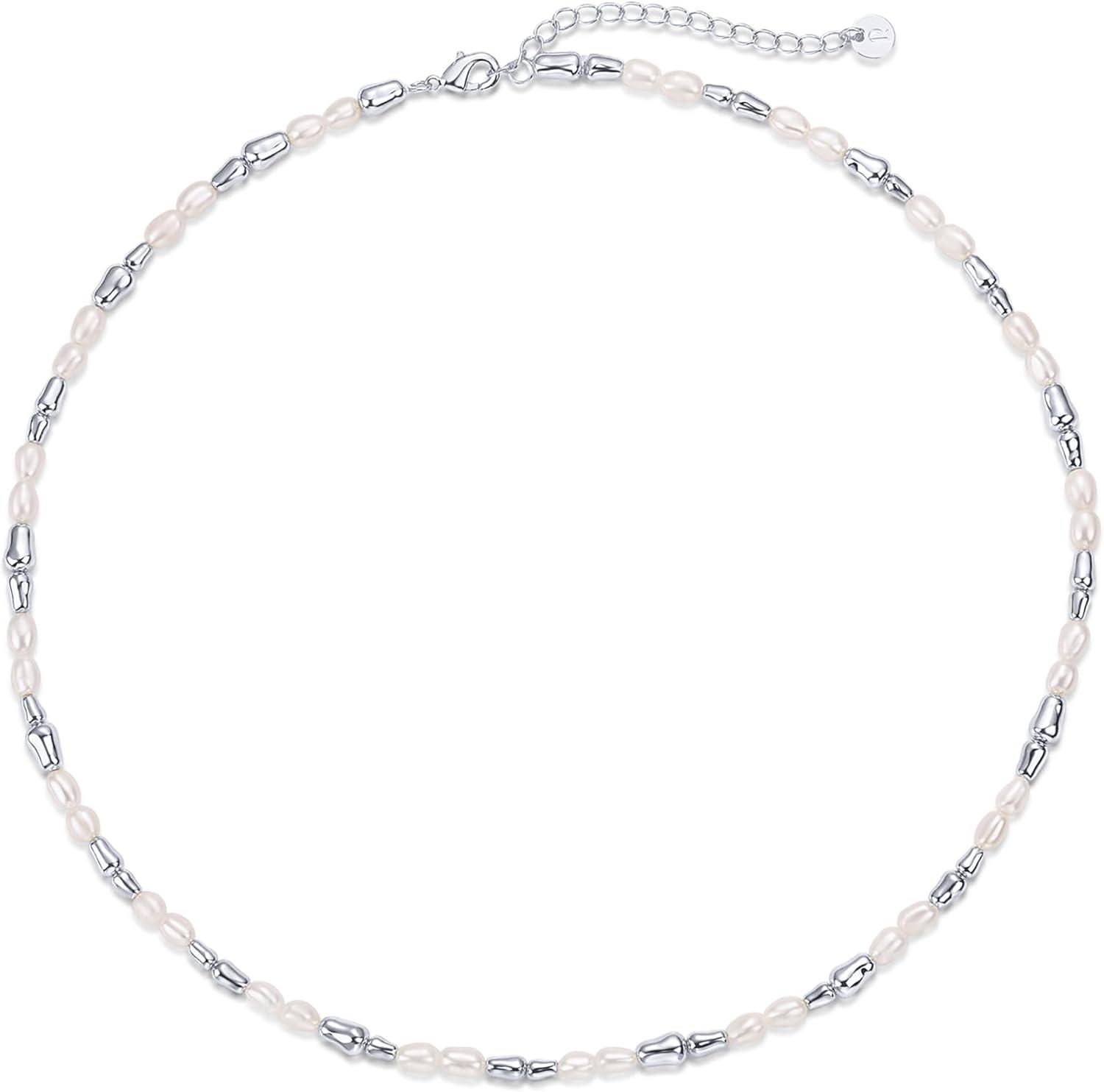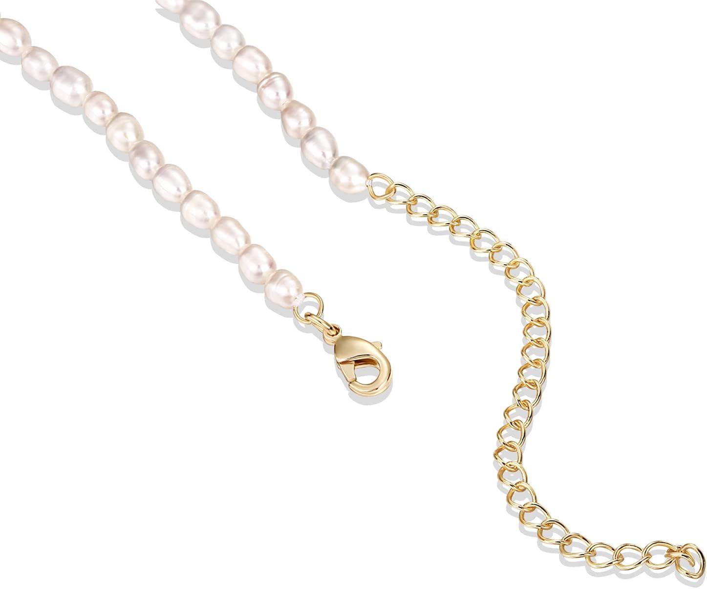 PAVOI 14K-18K Gold Plated Dainty Pearl Necklaces for Women – Station Beaded Choker Paperclip Chain Gold Pearl Necklace Bridal Jewelry(White Gold)