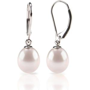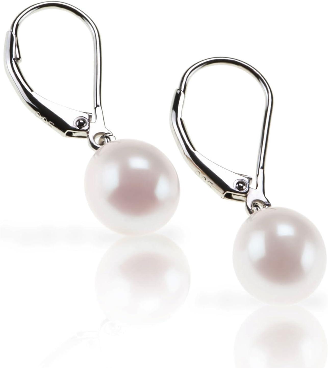 PAVOI Handpicked AAA+ Quality Freshwater Cultured Pearl Earrings Leverback Dangle Stud Pearl Earrings(White Gold)
