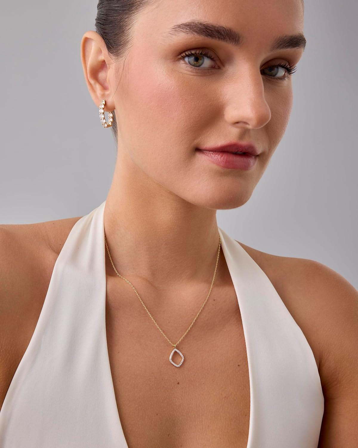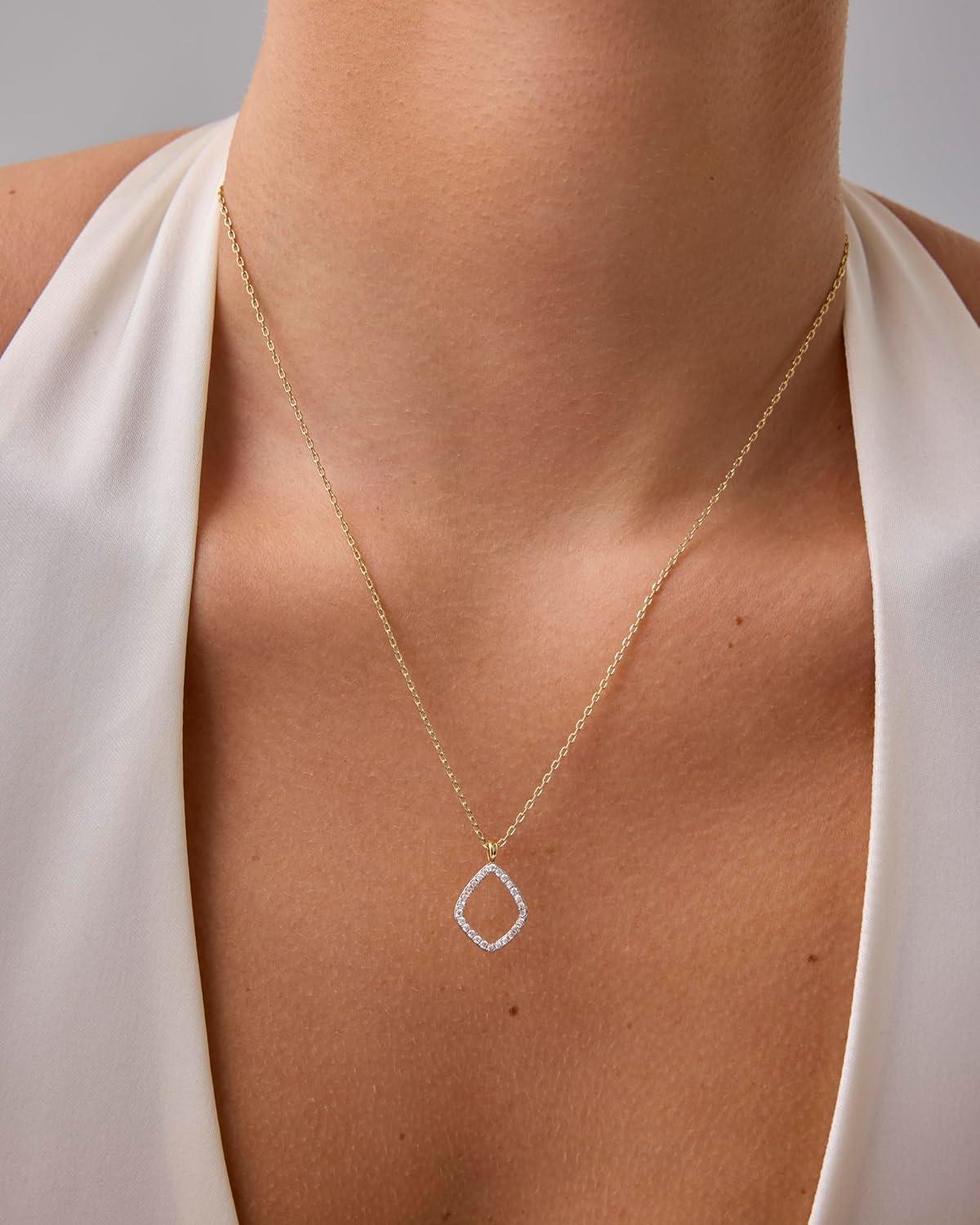 PAVOI 14K Gold Plated Two Toned Mixed Metals Diamond Shaped Dangle Pendant Necklace for Women with Cubic Zirconia | Geometric Necklace(White Gold)