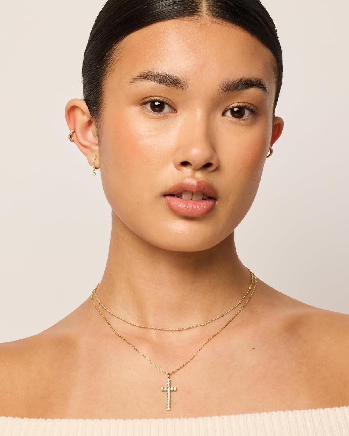 PAVOI 14K Gold Plated Cubic Zirconia Cross Necklace for Women | Cross Faith Pendant Necklaces(White & Yellow Pack)