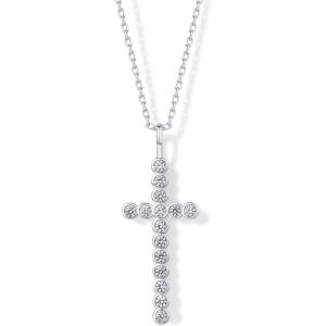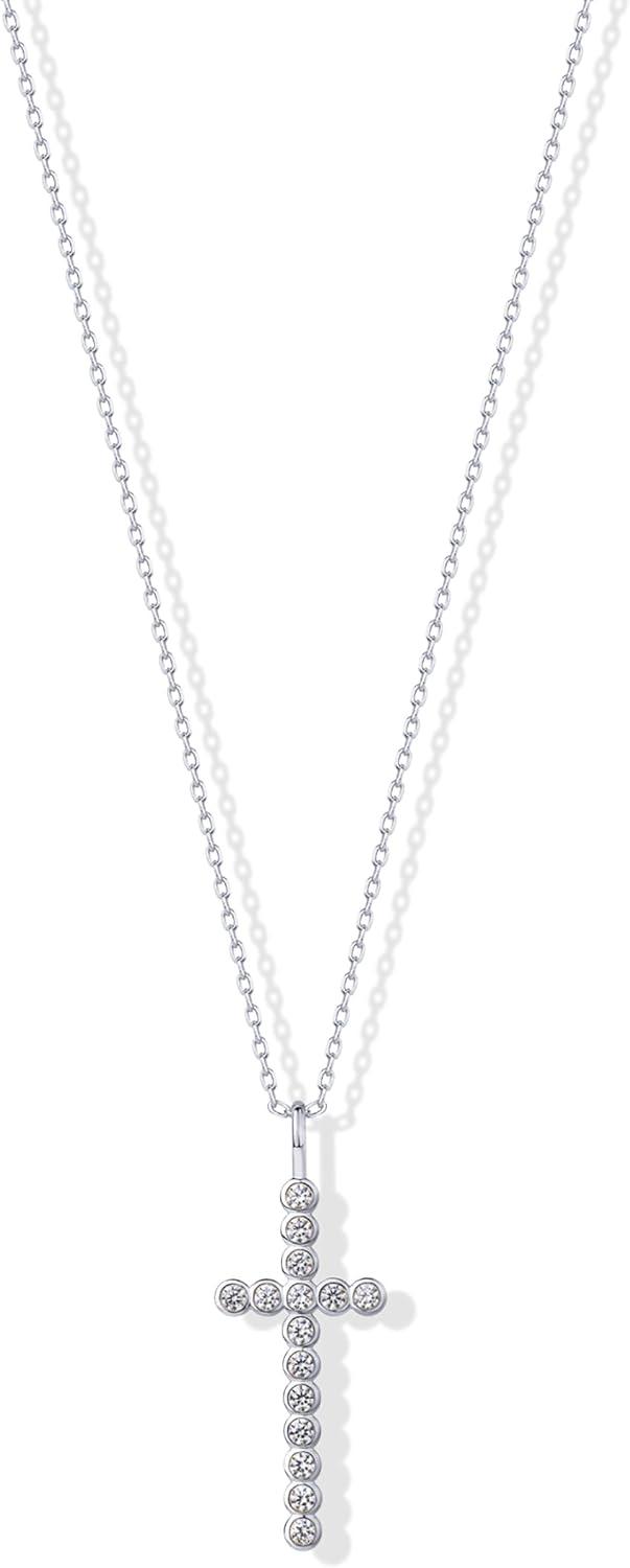 PAVOI 14K Gold Plated Cubic Zirconia Cross Pendant Necklaces for Women | Linear Bezel CZ Religious Cross Faith Pendant Necklace(White Gold)
