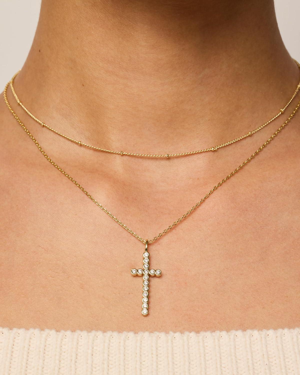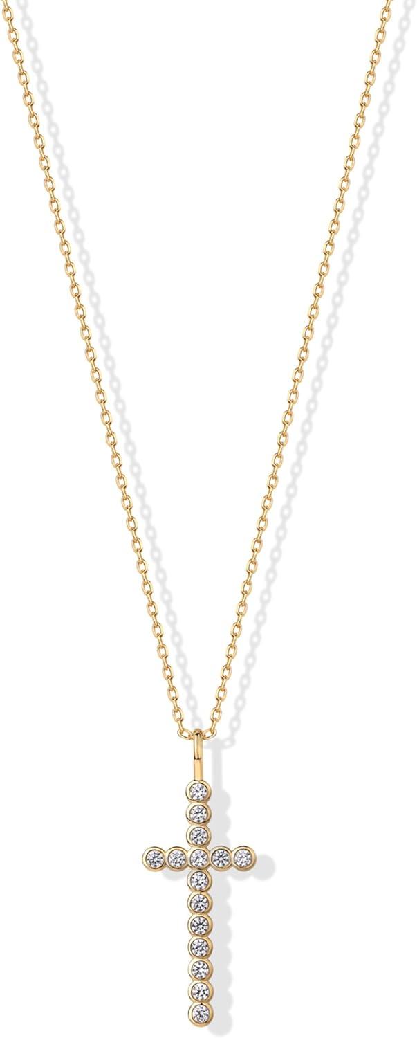 PAVOI 14K Gold Plated Cubic Zirconia Cross Pendant Necklaces for Women | Linear Bezel CZ Religious Cross Faith Pendant Necklace(Yellow Gold)