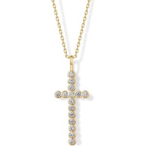 PAVOI 14K Gold Plated Cubic Zirconia Cross Necklace for Women | Cross Faith Pendant Necklaces(Yellow Gold)
