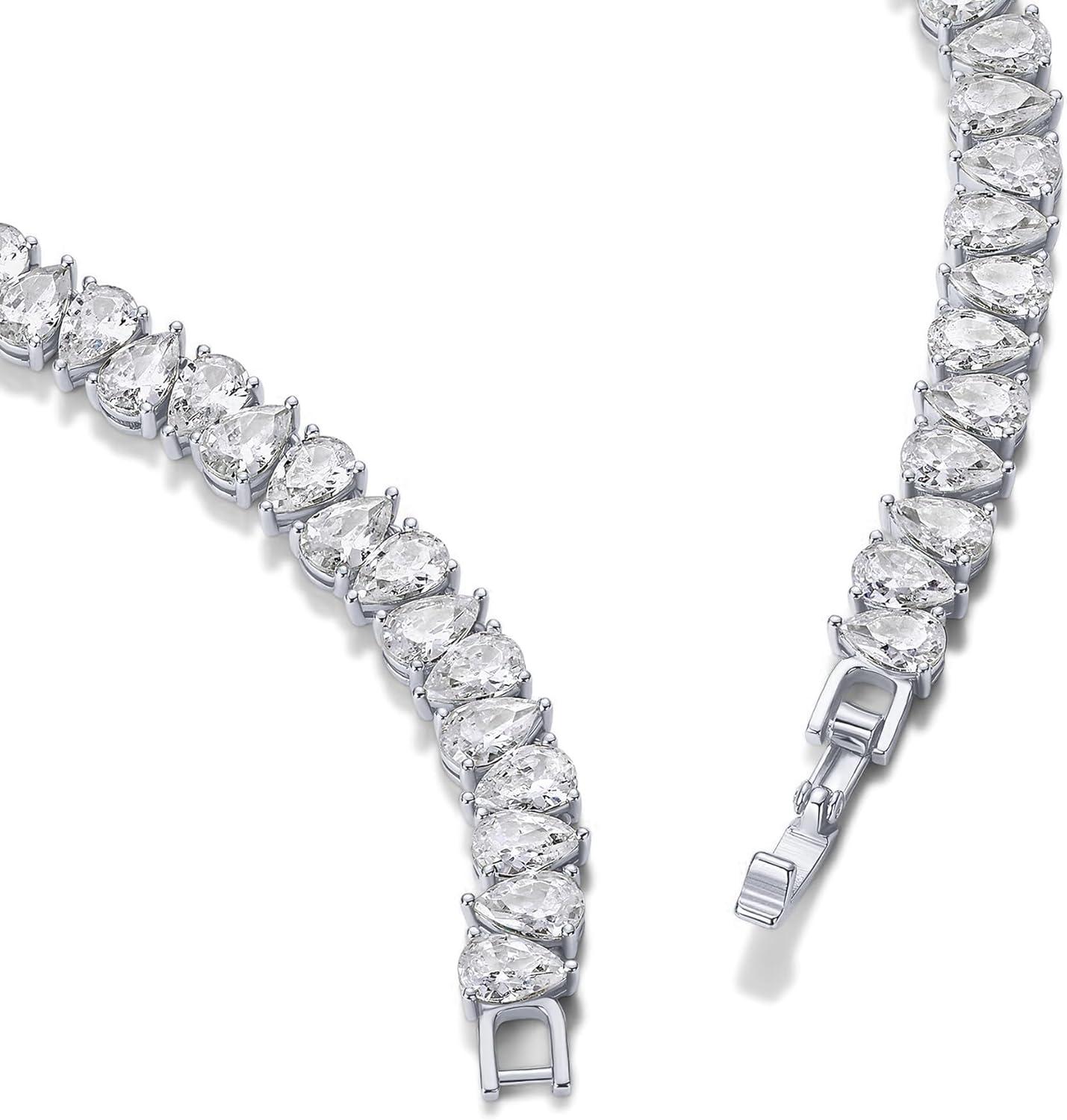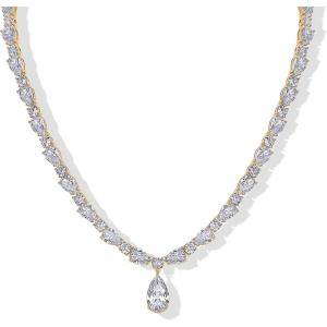 PAVOI 14K Gold Plated Pear Cubic Zirconia Tennis Necklace for Women – Tennis Chain Necklaces – Sizes 15″ and 18″(White Gold)