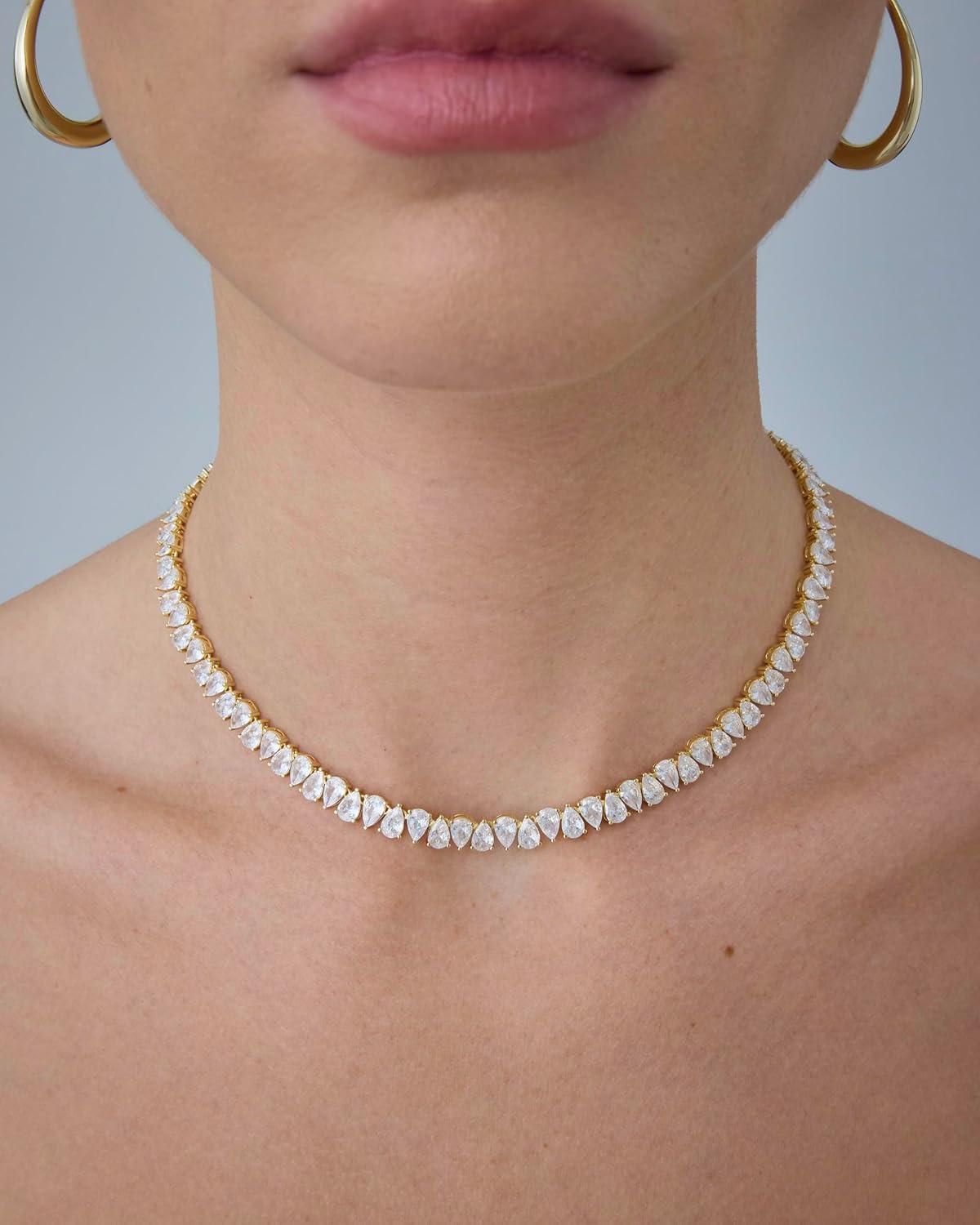 PAVOI 14K Gold Plated Simulated Diamond Tennis Necklaces for Women – Classic Tennis Chain – Timeless Station Round and Pear Cubic Zirconia Stones Choker Necklace(Pear – 15 Inches)