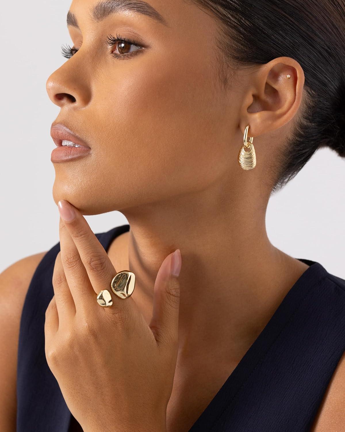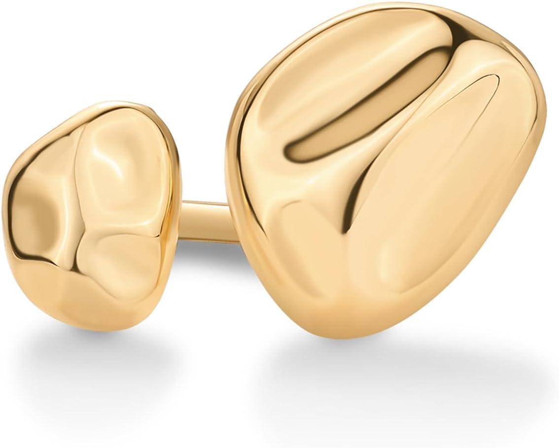 PAVOI 14K Gold Plated Chunky Open Statement Rings for Women – Bold Hammered Double Pebble Stackable Ring – Trendy Geometric Organic Fashion Bands Jewelry(Yellow Gold)