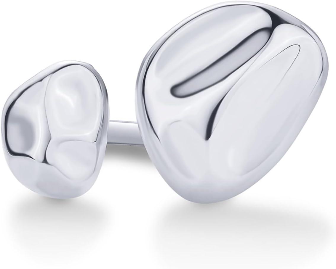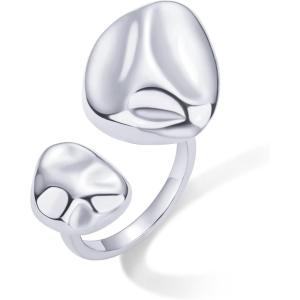 PAVOI 14K Gold Plated Chunky Open Statement Rings for Women – Bold Hammered Double Pebble Stackable Ring – Trendy Geometric Organic Fashion Bands Jewelry(White Gold)