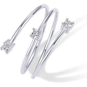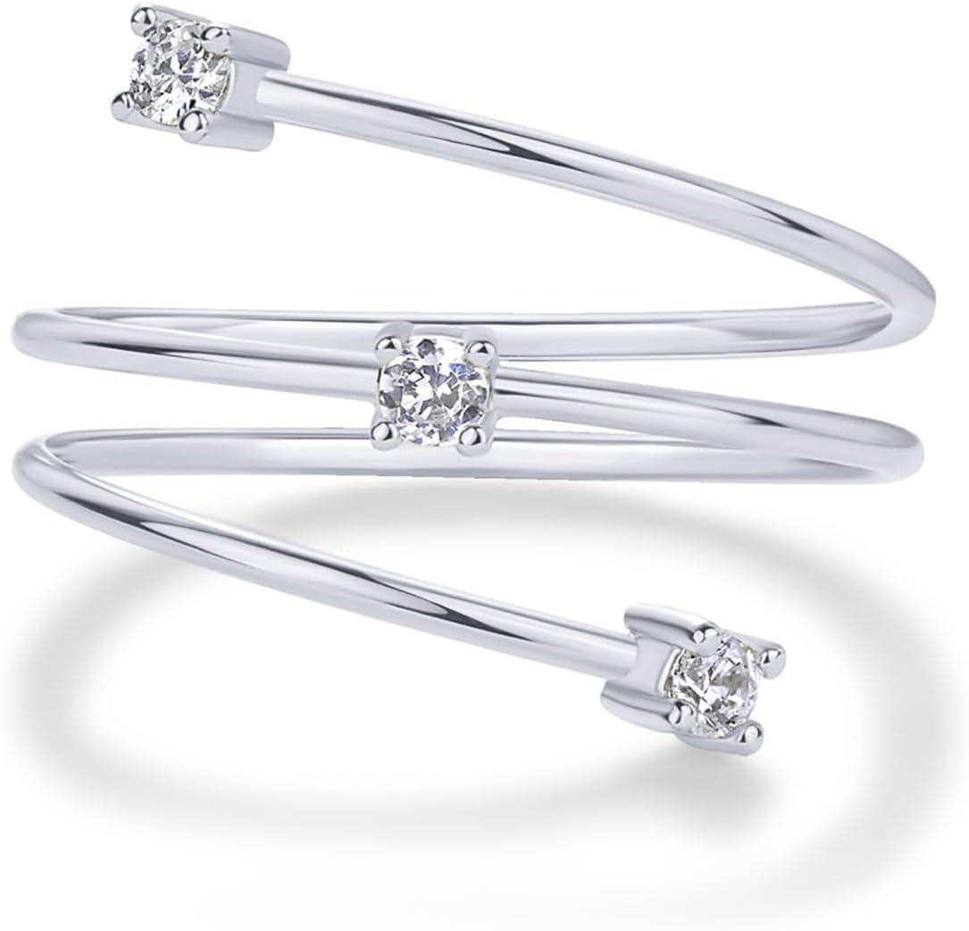 PAVOI 14K Gold Plated Dainty Wrap Ring for Women – Thin Spiral Band with Cubic Zirconia – Minimalist Dainty Open Rings for Women – Wrap Around Bands Trendy Fashion Jewelry(White Gold)