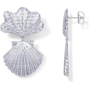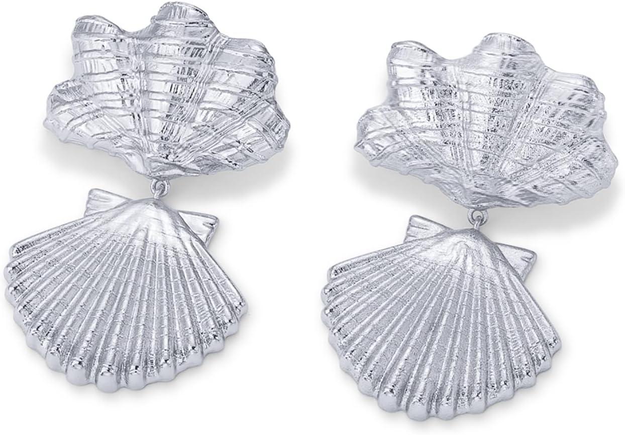 PAVOI 14K Gold Plated Dangle Sea Shell Earrings for Women – Statement Seashell Drop Dangle Earrings – Trendy Coastal Summer Beach Jewelry(White Gold)