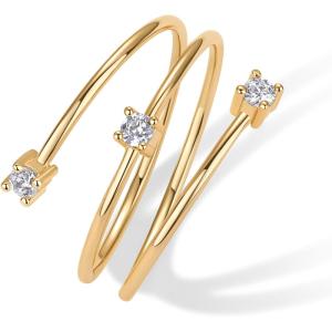 PAVOI 14K Gold Plated Dainty Wrap Ring for Women – Thin Spiral Band with Cubic Zirconia – Minimalist Dainty Open Rings for Women – Wrap Around Bands Trendy Fashion Jewelry(Yellow Gold)