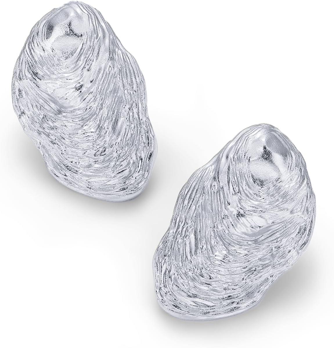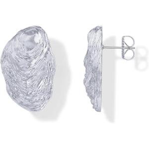 PAVOI 14K Gold Plated Chunky Sea Shell Earrings for Women – Statement Coastal Seashell Stud Earrings – Trendy Beach Geometric Ridge Studs Summer Jewelry(White Gold)