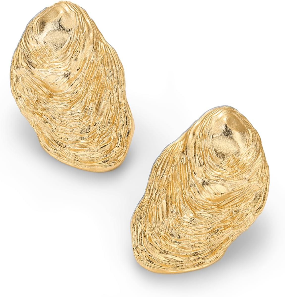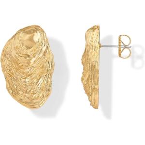 PAVOI 14K Gold Plated Chunky Sea Shell Earrings for Women – Statement Coastal Seashell Stud Earrings – Trendy Beach Geometric Ridge Studs Summer Jewelry(Yellow Gold)