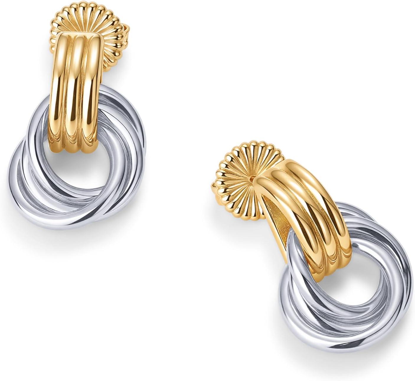 PAVOI 14K Gold Plated Door Knocker Statement Earrings for Women – Chunky Gold Earrings for Women – Trendy Mixed Metals Bold Knot Drop Dangle Jewelry(Two-Toned)