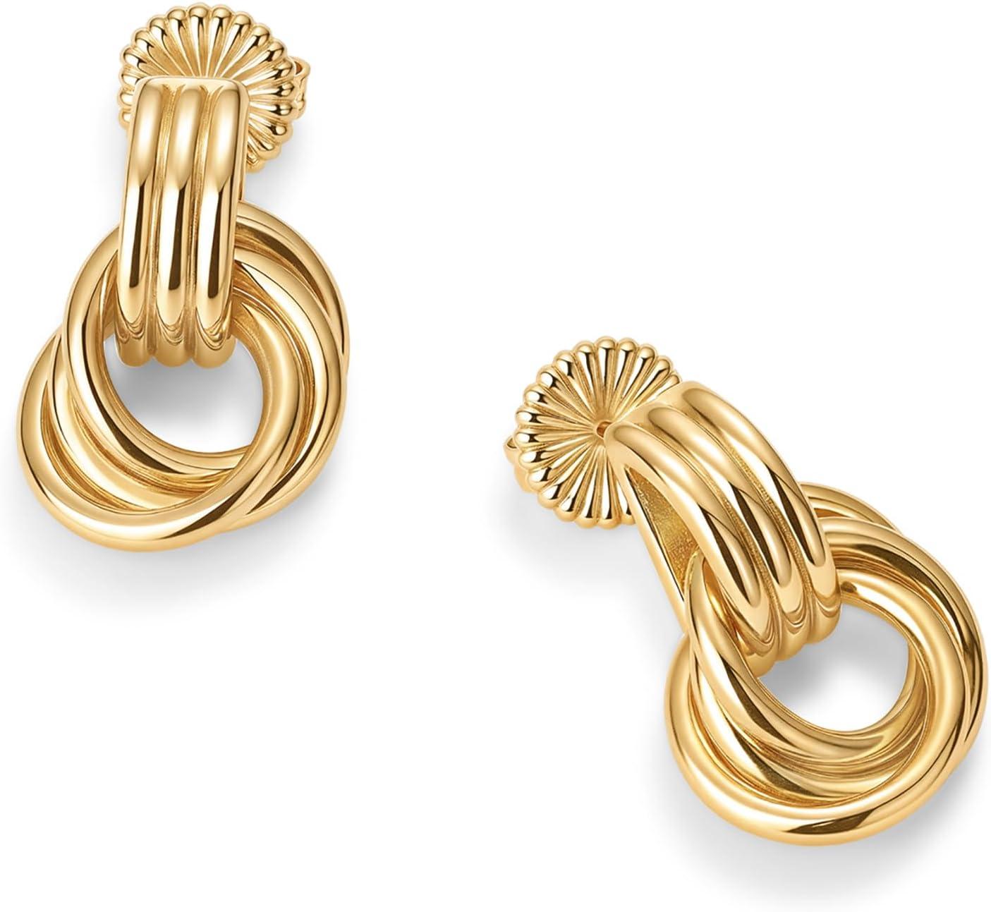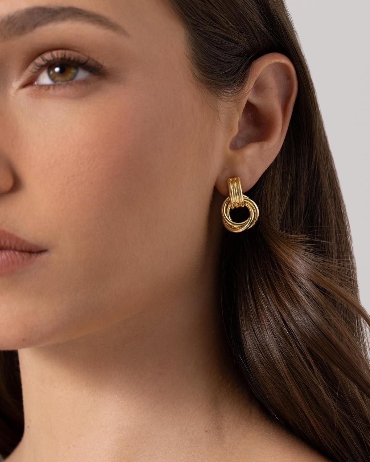PAVOI 14K Gold Plated Door Knocker Statement Earrings for Women – Chunky Gold Earrings for Women – Trendy Mixed Metals Bold Knot Drop Dangle Jewelry(Yellow Gold)