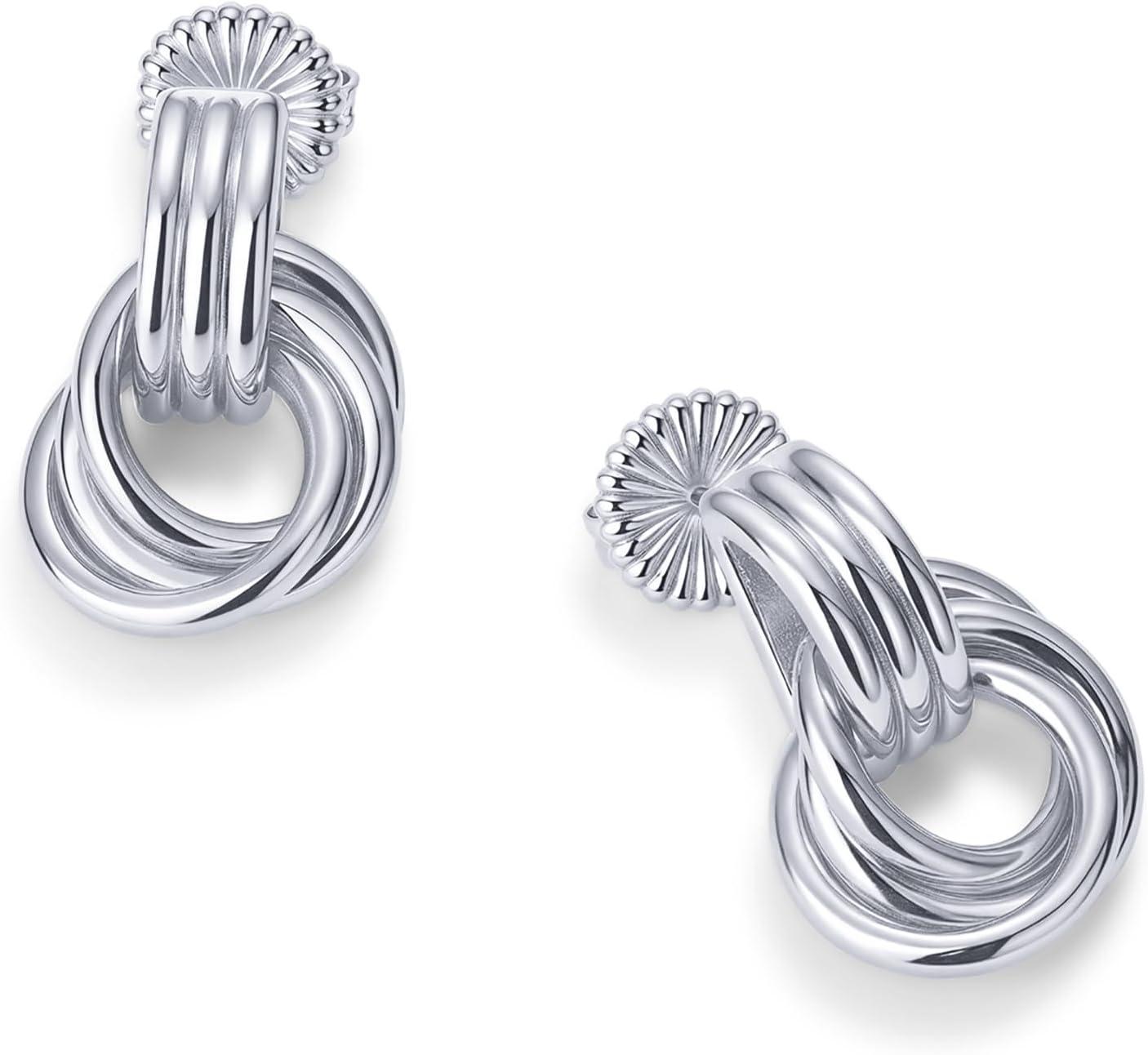 PAVOI 14K Gold Plated Door Knocker Statement Earrings for Women – Chunky Gold Earrings for Women – Trendy Mixed Metals Bold Knot Drop Dangle Jewelry(White Gold)