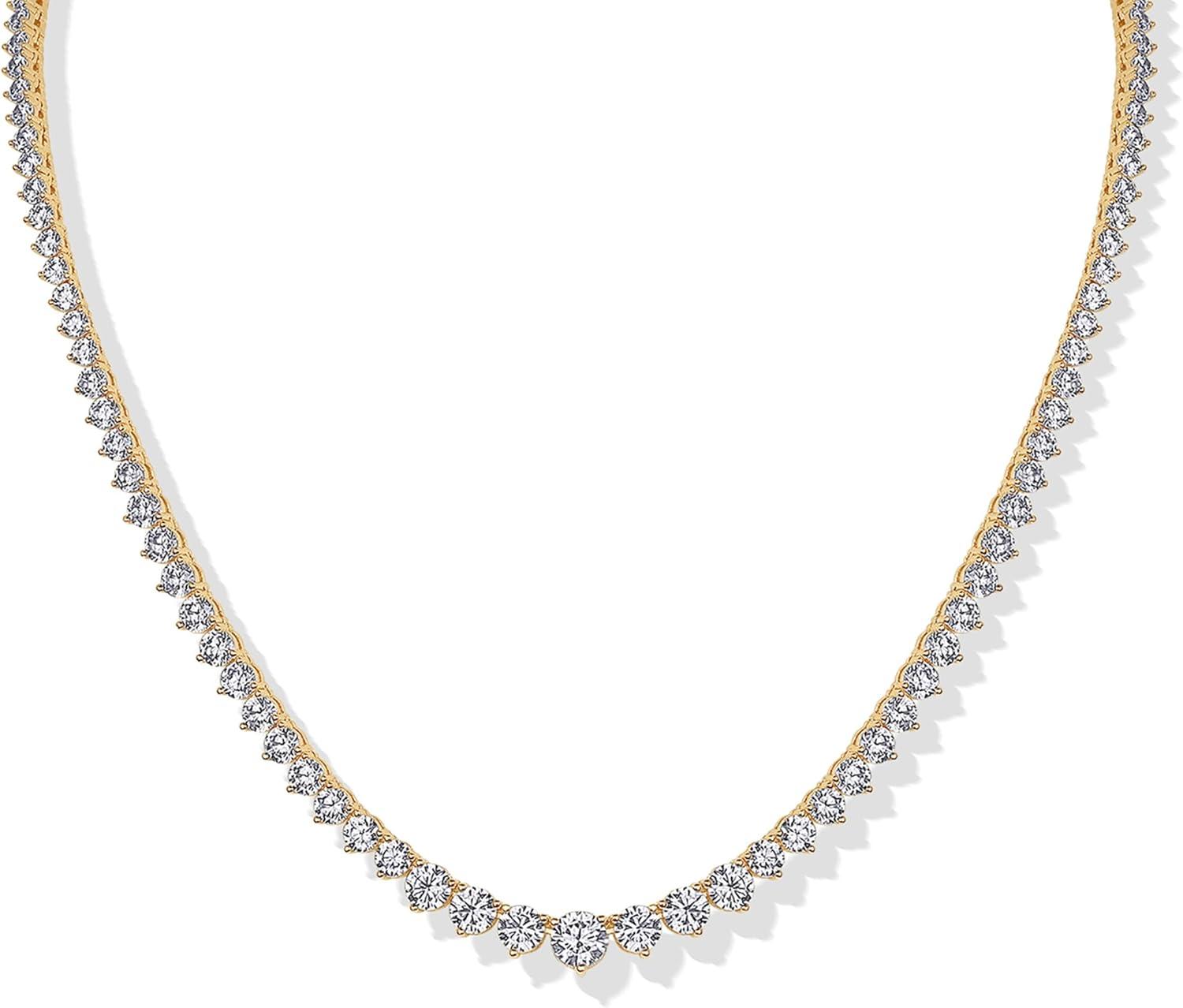 PAVOI 14K Gold Plated Graduated Tennis Necklaces for Women – Cubic Zirconia Tennis Necklace for Brides & Bridesmaids – Simulated Diamond Chain Trendy Wedding Jewelry(Yellow Gold)