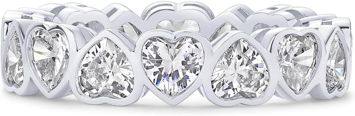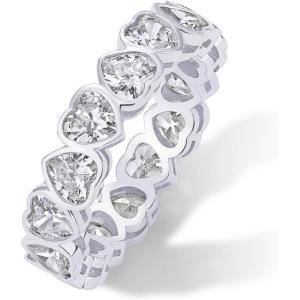 PAVOI 14K Gold Plated Heart Ring for Women – Heart-Shaped Cubic Zirconia Eternity Rings for Women – Stackable Wedding Band for Brides – Cute Promise Jewelry Gifts(White Gold)