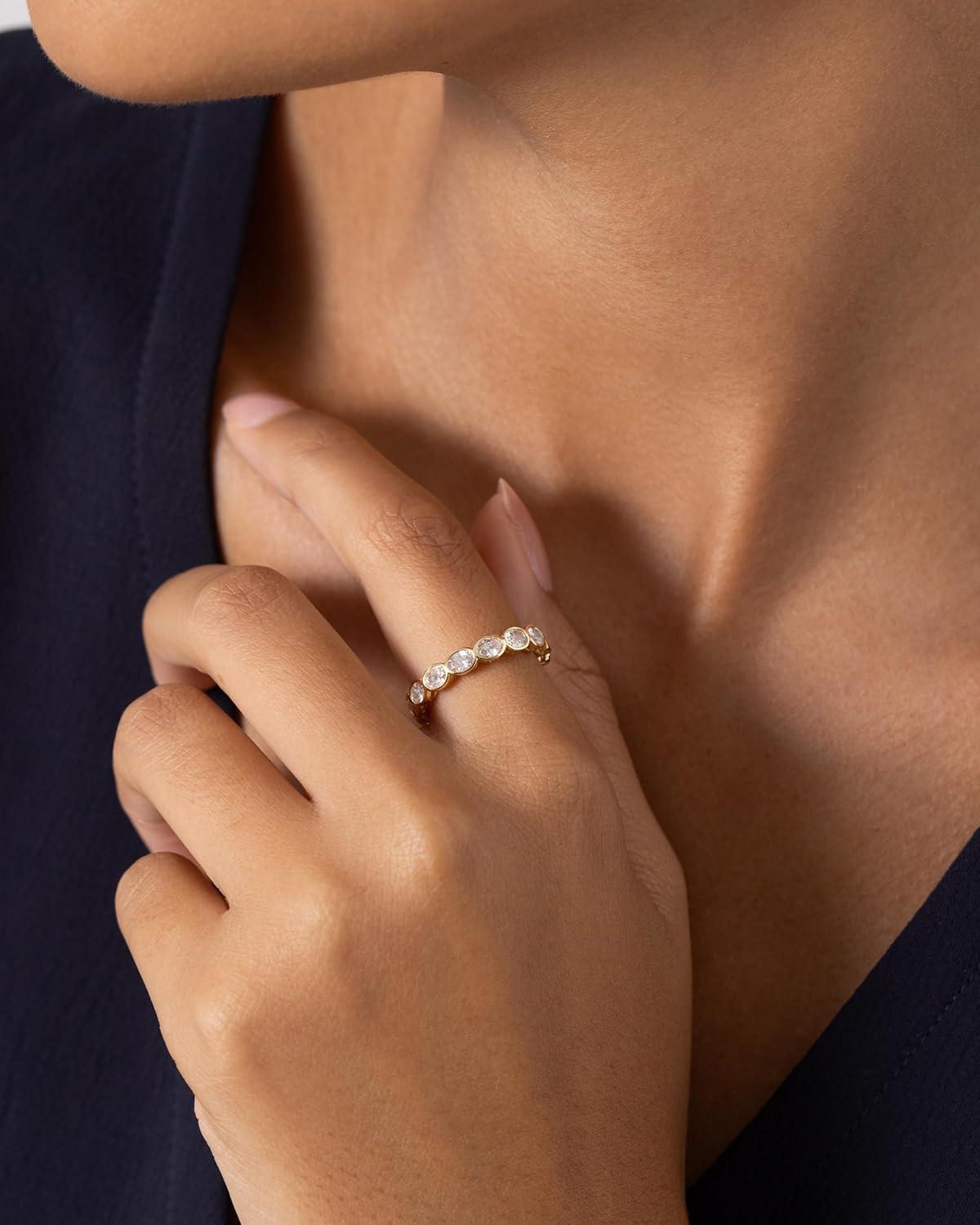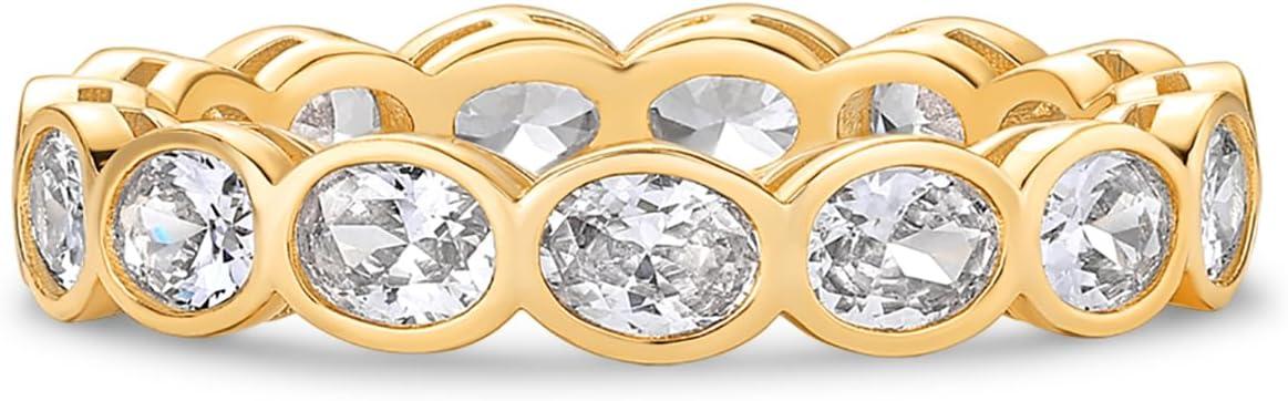 PAVOI 14K Gold Plated Oval Eternity Band for Women – Oval Cubic Zirconia Rings for Women – Stackable Wedding Band for Brides – Promise Eternity Ring Jewelry Gifts(Yellow Gold)