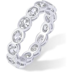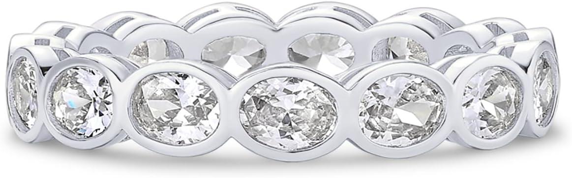 PAVOI 14K Gold Plated Oval Eternity Band for Women – Oval Cubic Zirconia Rings for Women – Stackable Wedding Band for Brides – Promise Eternity Ring Jewelry Gifts(White Gold)