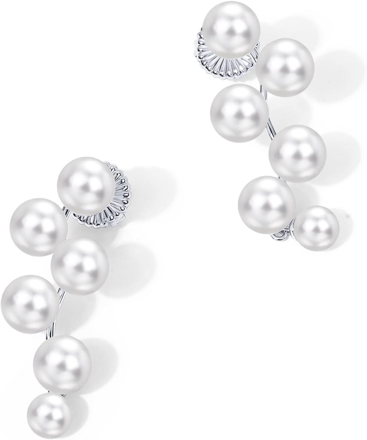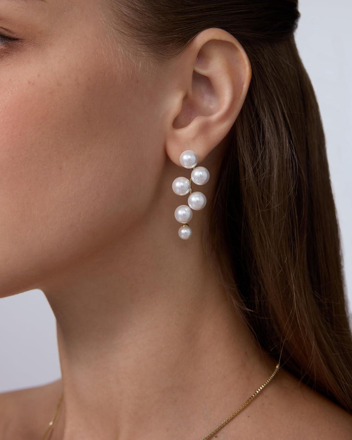 PAVOI 14K Gold Plated Pearl Drop Earrings for Women – 925 Sterling Silver Posts Large Dangle Pearl Wedding Earrings for Brides & Bridesmaids – Linear Statement Bridal Jewelry Gifts(White Gold)