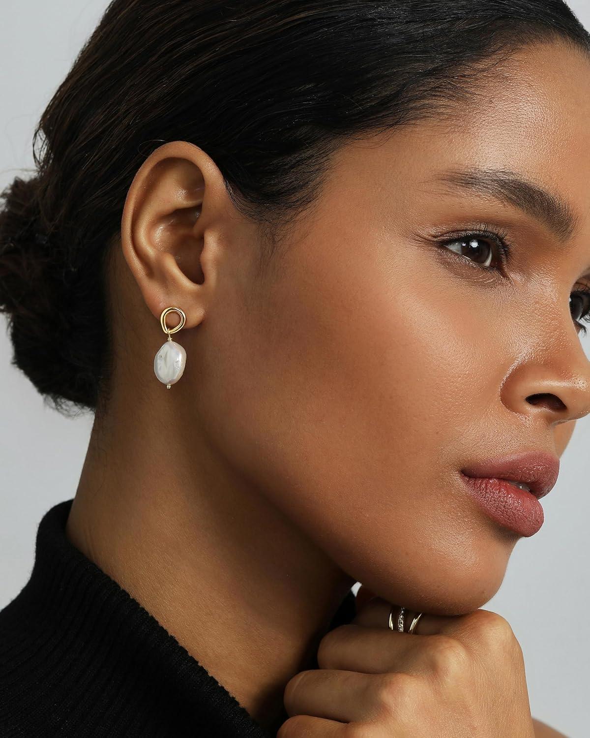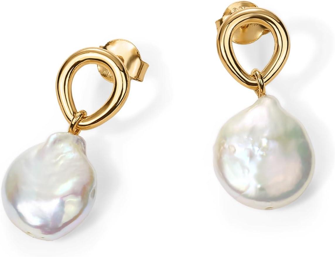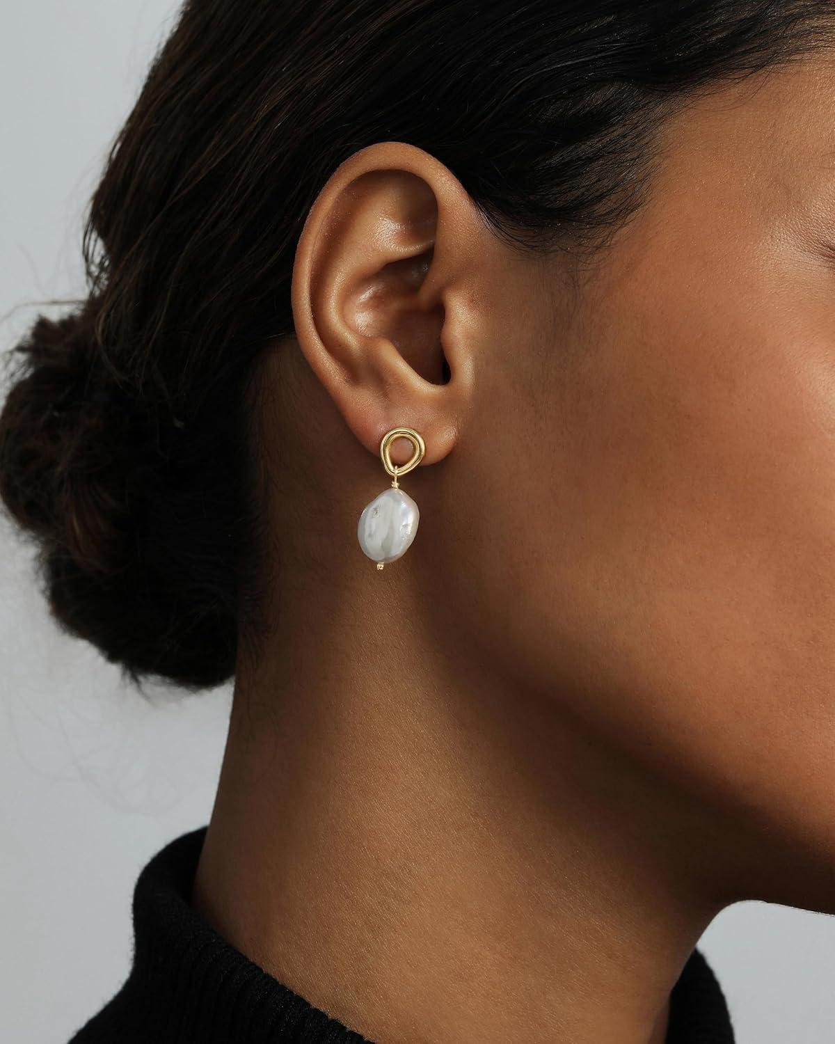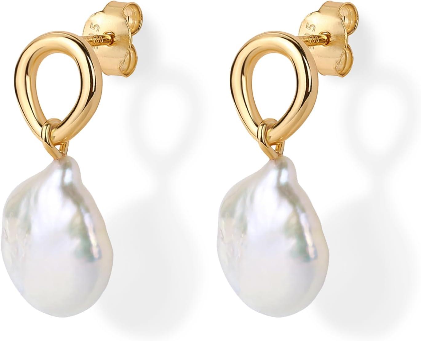 PAVOI 14K Gold Plated Pearl Earrings for Women – Pearl Statement Drop Bridal Earrings – 925 Sterling Silver Posts Dangle Studs Gold Wedding Jewelry(White Gold)