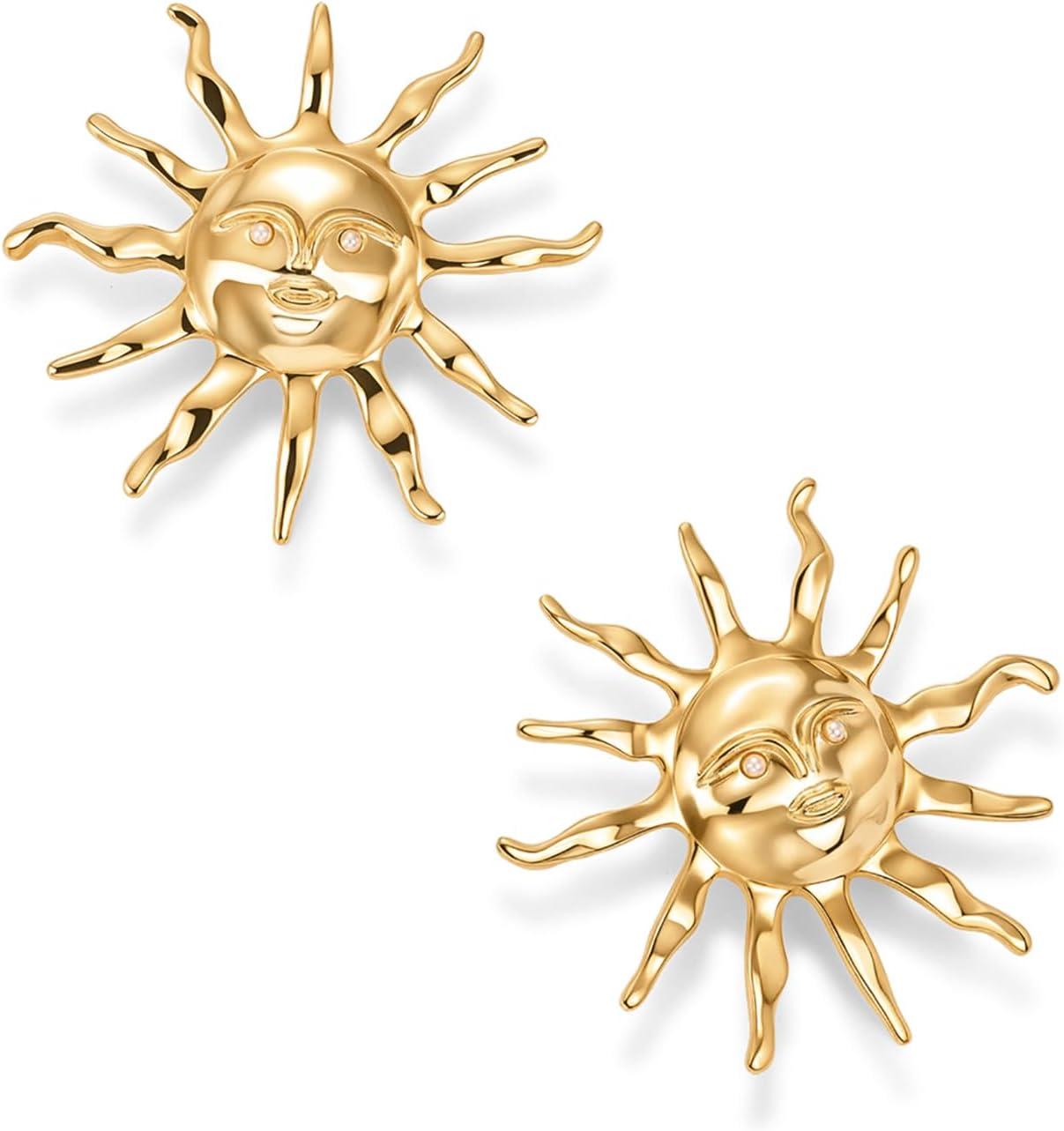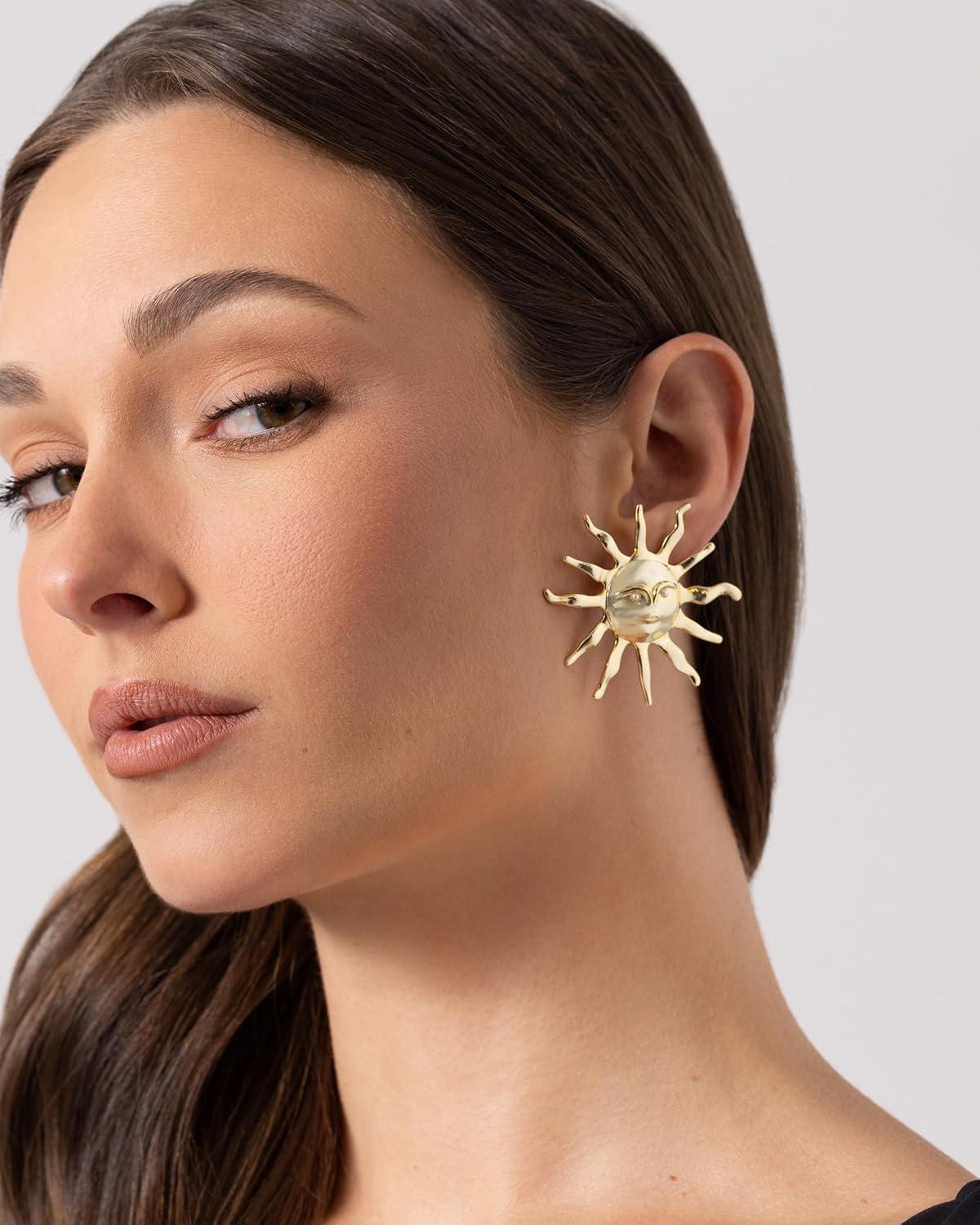 PAVOI 14K Gold Plated Statement Sun Earrings for Women – Chunky Sun Stud Earrings – Gold Big Celestial Studs with Pearls – Trendy Summer Jewelry(Yellow Gold)