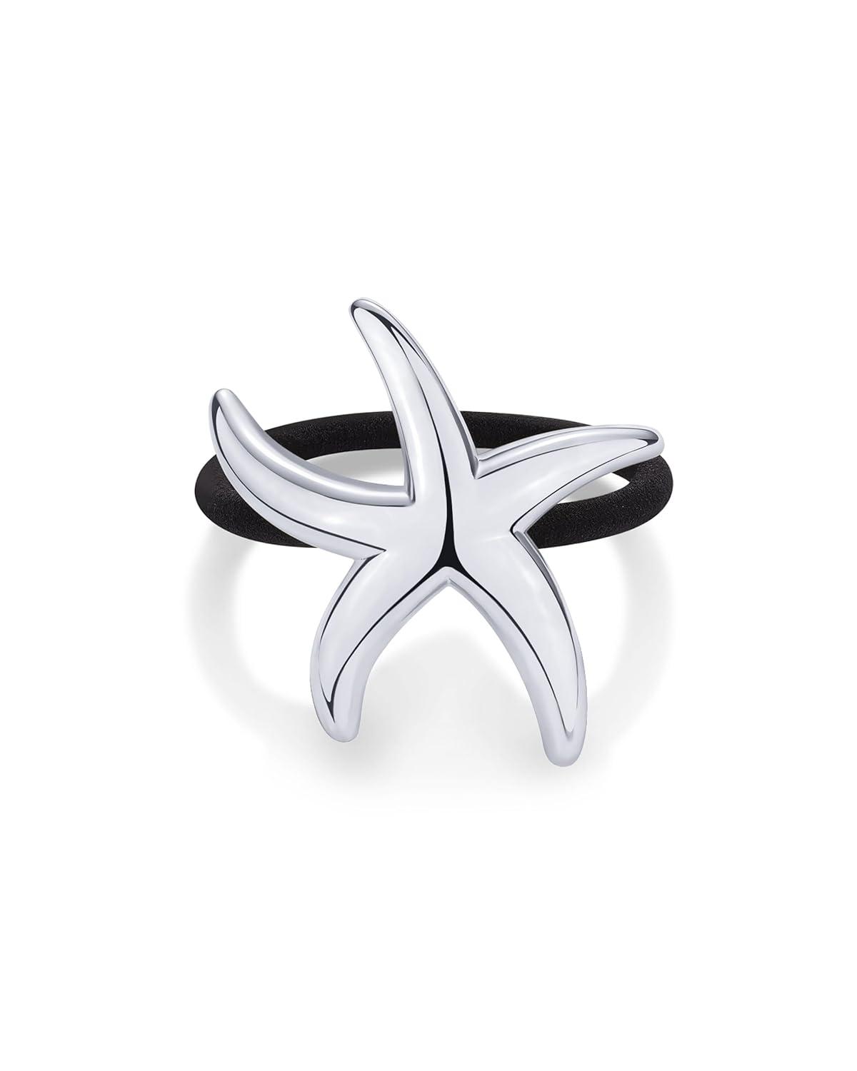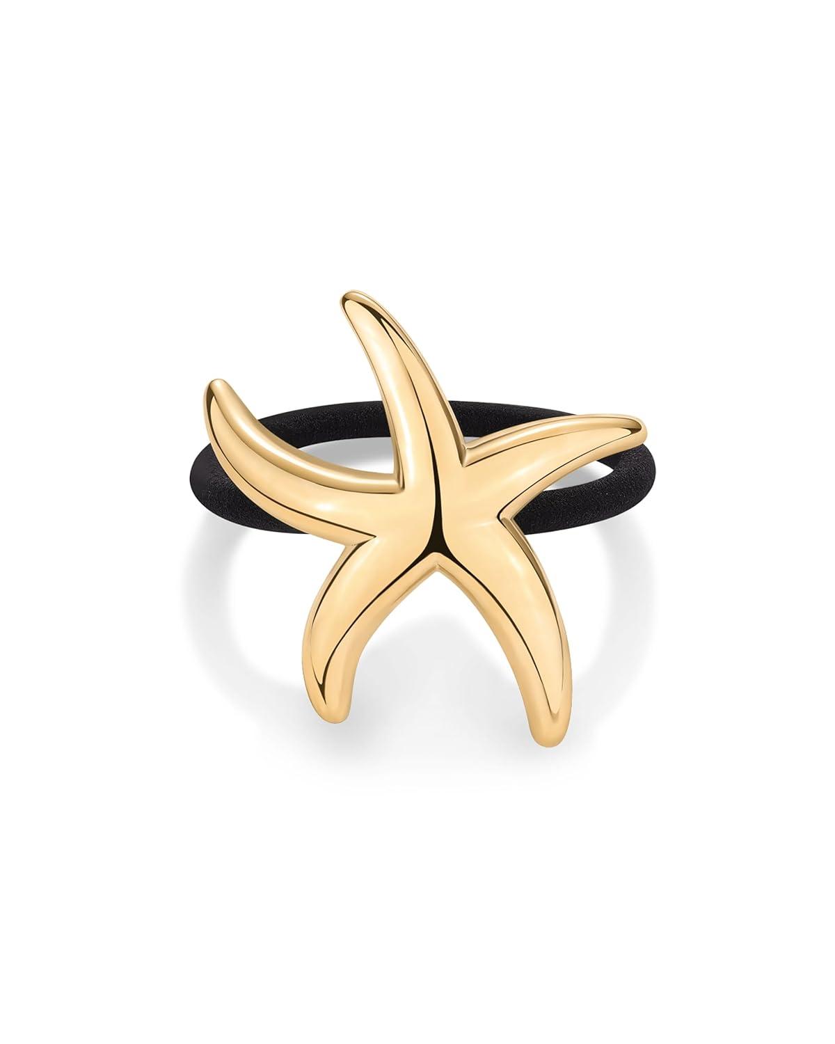 PAVOI 14K Yellow Gold Plated Waterproof Chunky Croissant Metal Hair Cuff for Women – Stainless Steel Statement Ponytail Cuff Fashion Accessories – Twisted Stretchy Gold Hair Ties for Ponytails(Starfish White Gold)
