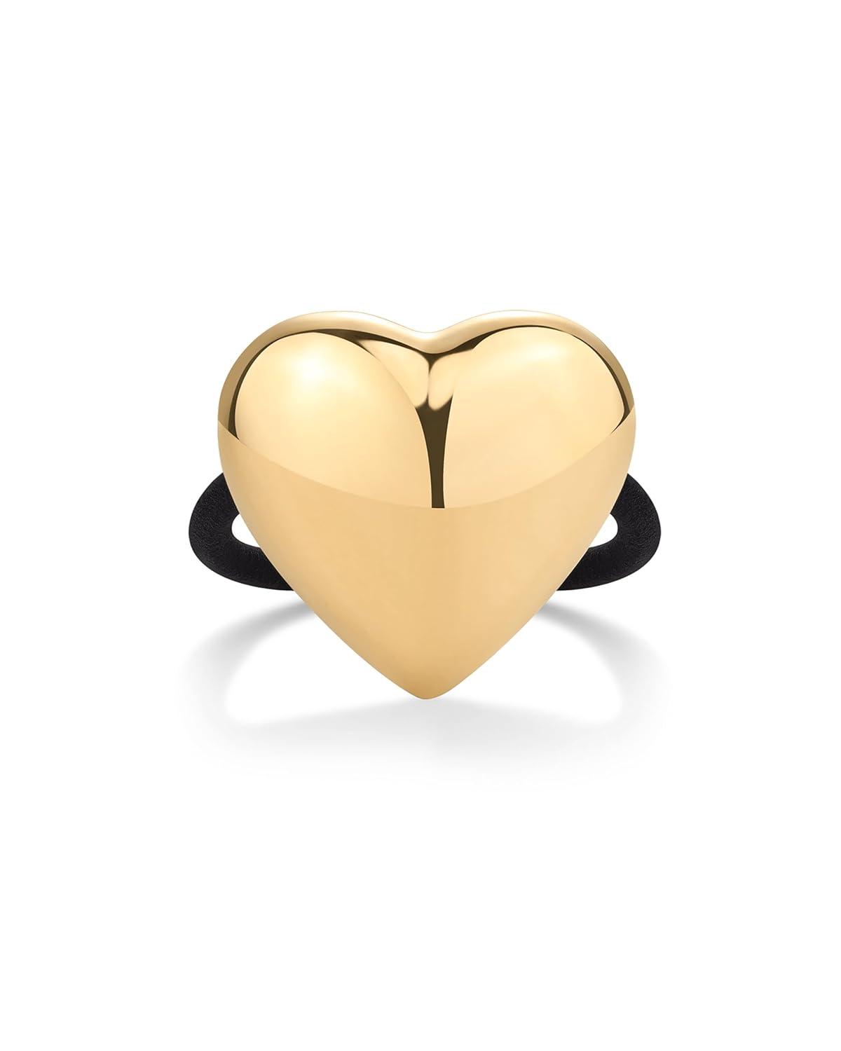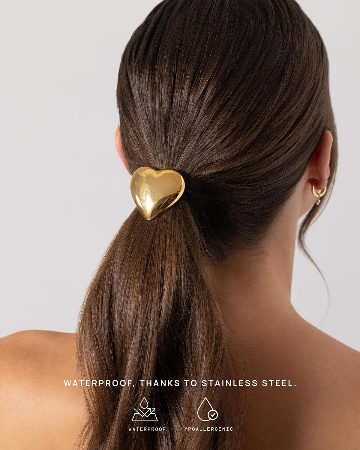 PAVOI 14K Yellow Gold Plated Waterproof Chunky Croissant Metal Hair Cuff for Women – Stainless Steel Statement Ponytail Cuff Fashion Accessories – Twisted Stretchy Gold Hair Ties for Ponytails(Heart Yellow Gold)