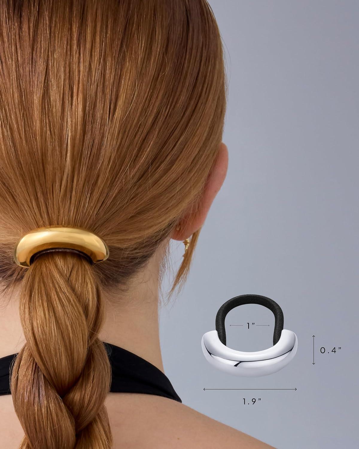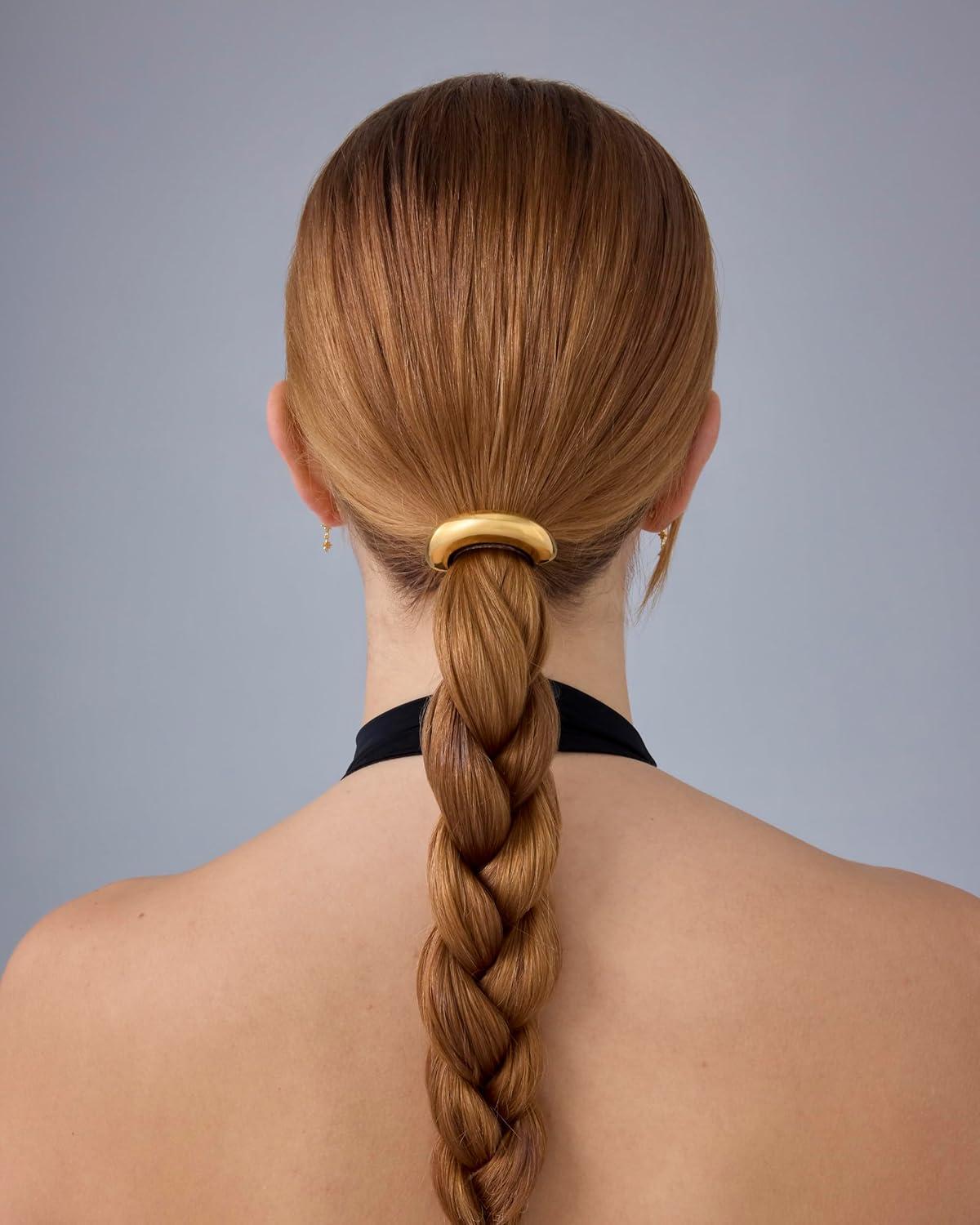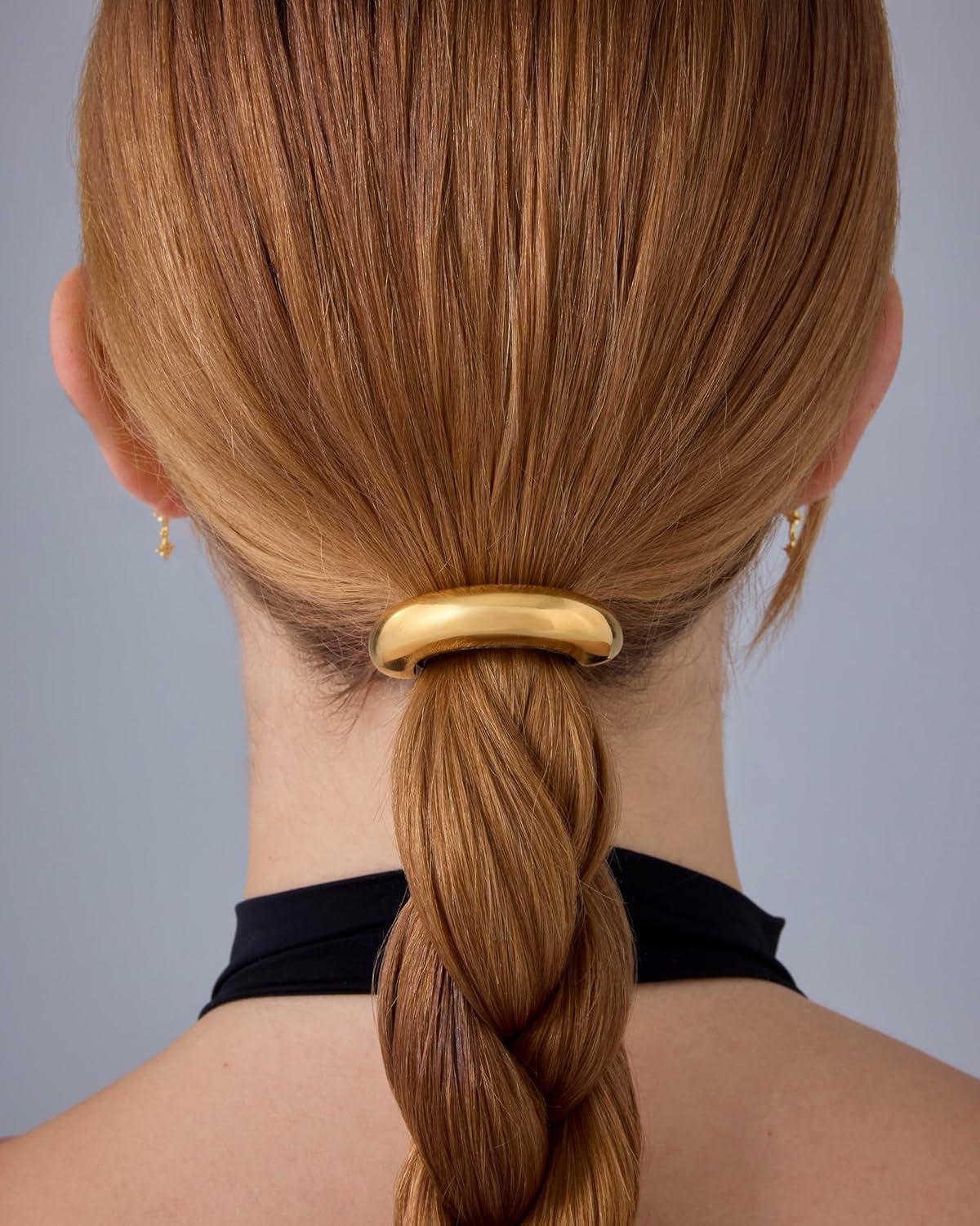 PAVOI 14K Yellow Gold Plated Waterproof Chunky Croissant Metal Hair Cuff for Women – Stainless Steel Statement Ponytail Cuff Fashion Accessories – Twisted Stretchy Gold Hair Ties for Ponytails(Arch White Gold)