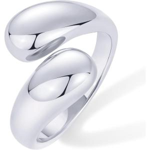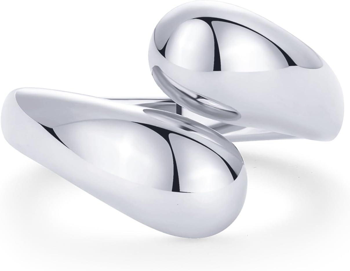 PAVOI 14K Gold Plated Chunky Open Twist Stackable Rings for Women | Bold Crossover Statement Ring Band(White Gold)