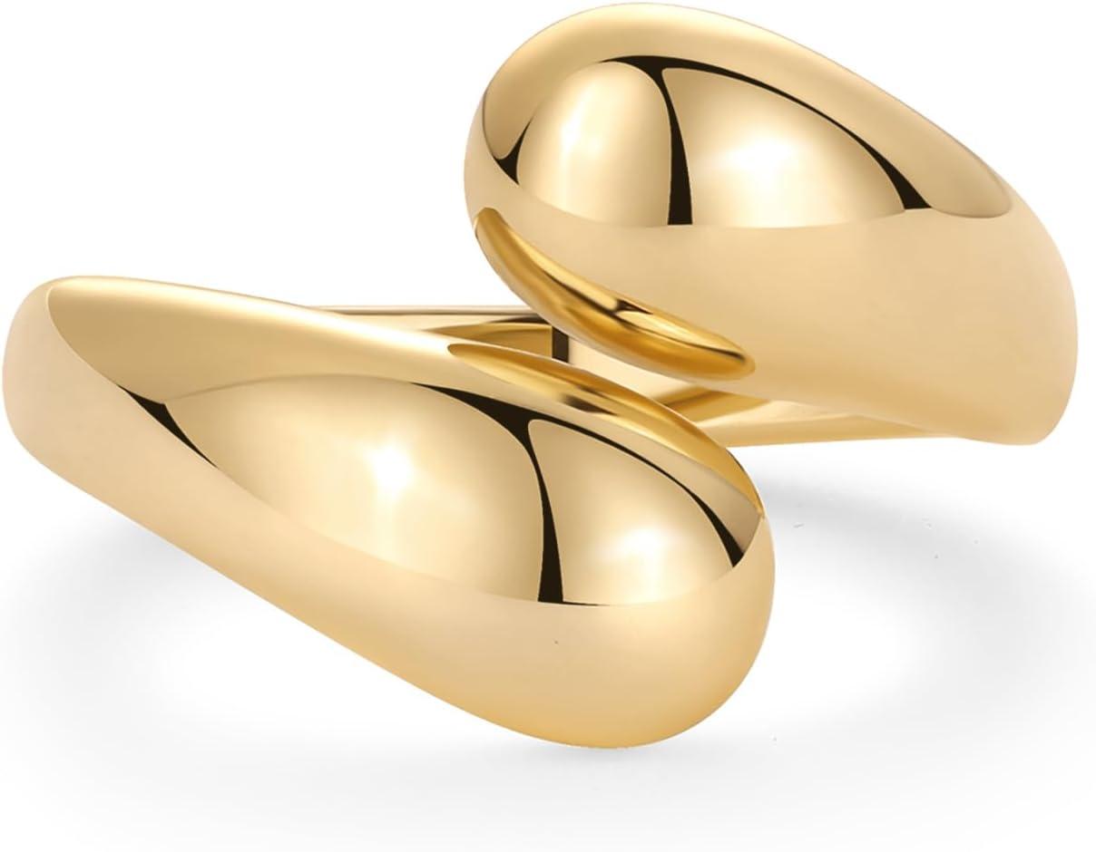 PAVOI 14K Gold Plated Chunky Open Twist Stackable Rings for Women | Bold Crossover Statement Ring Band(Yellow Gold)