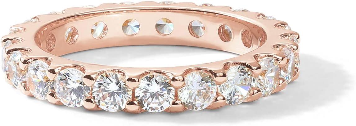 PAVOI 14K Gold Plated Cubic Zirconia Stackable Eternity Ring – 3.0mm Gold Wedding Ring for Women – Fake Promise Band Stacking Jewelry(Rose Gold)