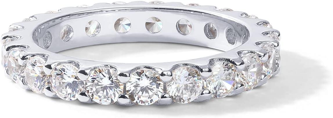 PAVOI 14K Gold Plated Cubic Zirconia Stackable Eternity Ring – 3.0mm Gold Wedding Ring for Women – Fake Promise Band Stacking Jewelry(White Gold)