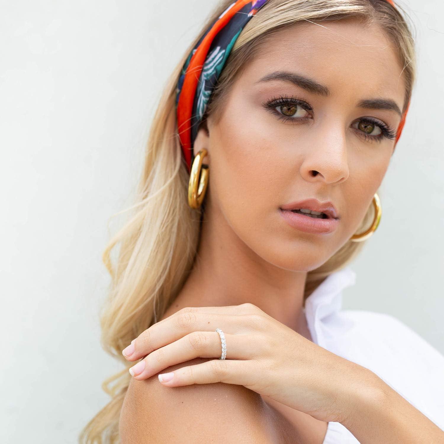 PAVOI 14K Gold Plated Cubic Zirconia Twisted Rope Eternity Band for Women(White Gold)