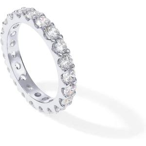 PAVOI 14K Gold Plated Cubic Zirconia Double Row Eternity Band for Women(White Gold)