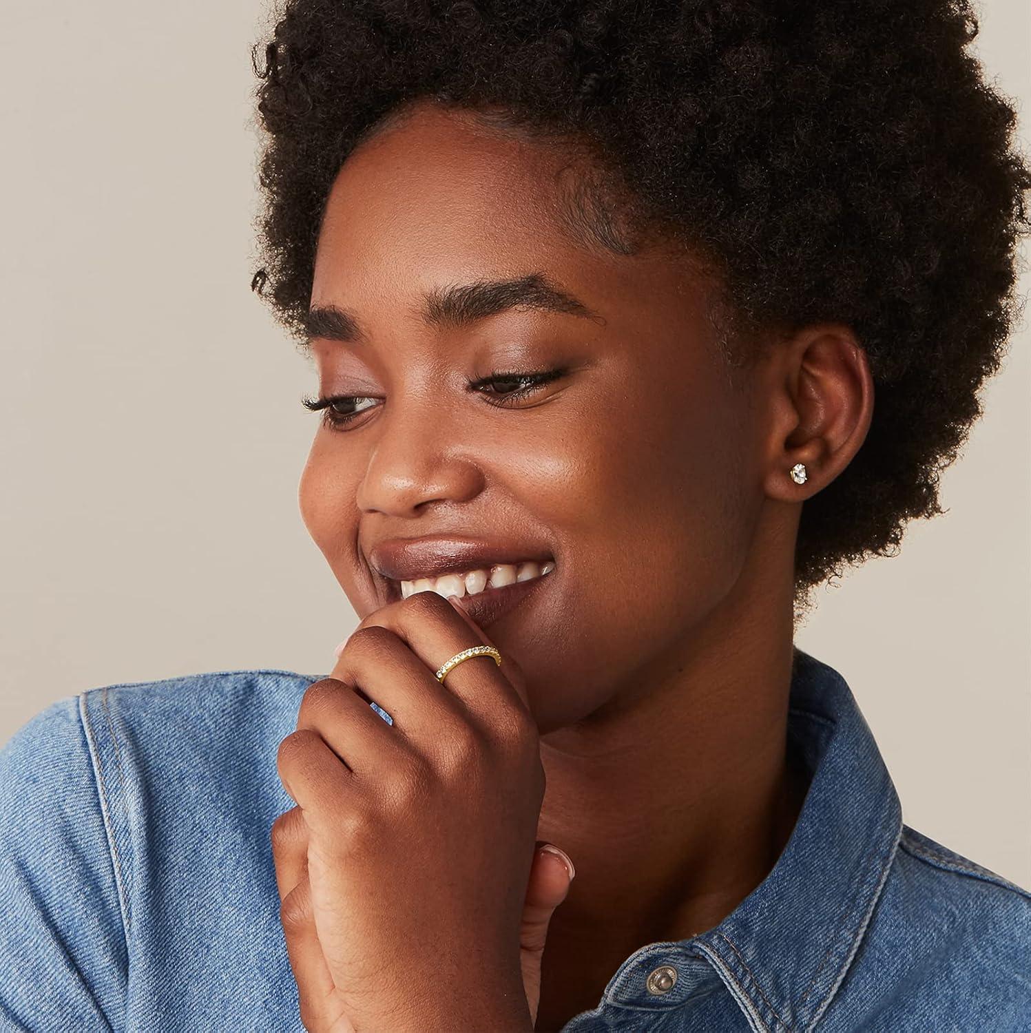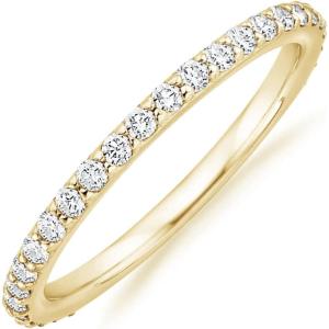 PAVOI 14K Gold Plated Eternity Ring | Stackable Cubic Zirconia Gold Band Ring | Dainty Diamond-Inspired Womens Wedding Jewelry(Yellow Gold)