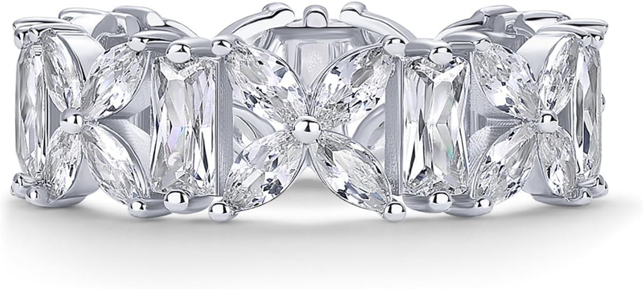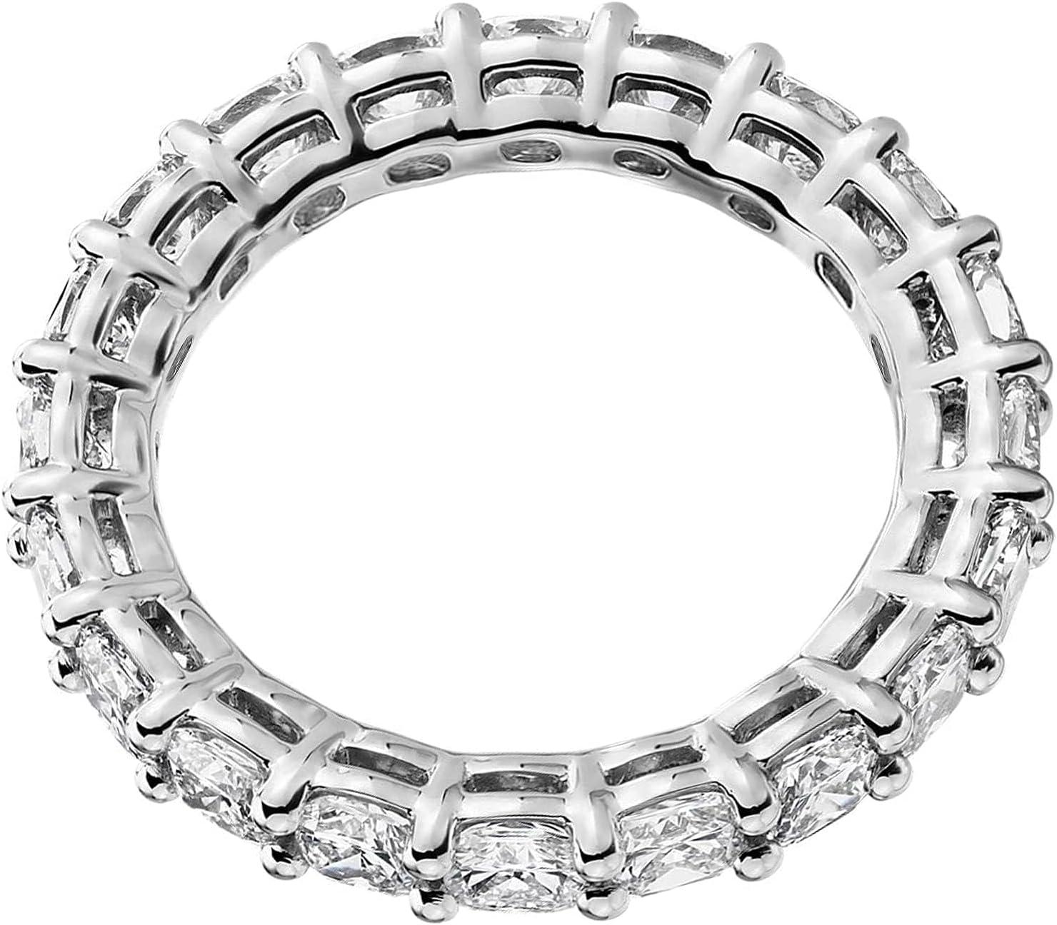 PAVOI 14K Gold Plated Eternity Ring for Women – Square-Cut Cubic Zirconia Rings – Stackable Love Wedding Band(White Gold)
