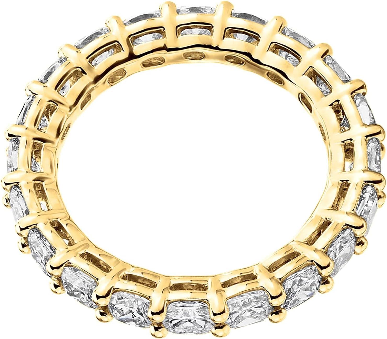 PAVOI 14K Gold Plated Eternity Ring for Women – Square-Cut Cubic Zirconia Rings – Stackable Love Wedding Band(Yellow Gold)