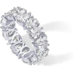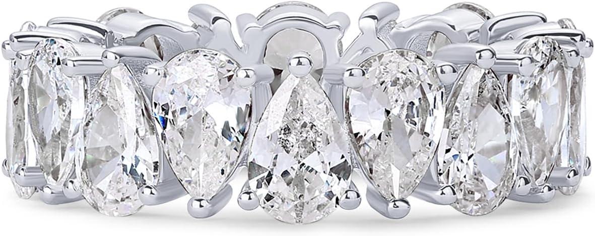 PAVOI 14K Gold Plated Pear Love Eternity Rings for Women | Gold Cubic Zirconia Ring | Bridal Eternity Wedding Band Ring(White Gold)