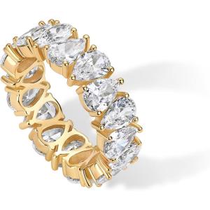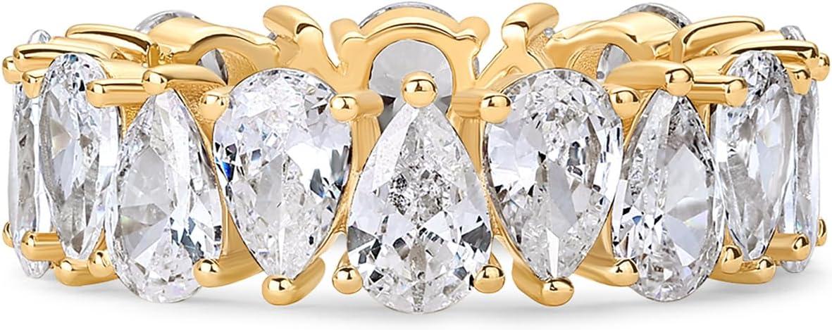 PAVOI 14K Gold Plated Pear Love Eternity Rings for Women | Gold Cubic Zirconia Ring | Bridal Eternity Wedding Band Ring(Yellow Gold)