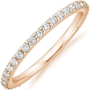 PAVOI 14K Gold Plated Eternity Ring | Stackable Cubic Zirconia Gold Band Ring | Dainty Diamond-Inspired Womens Wedding Jewelry(Rose Gold)