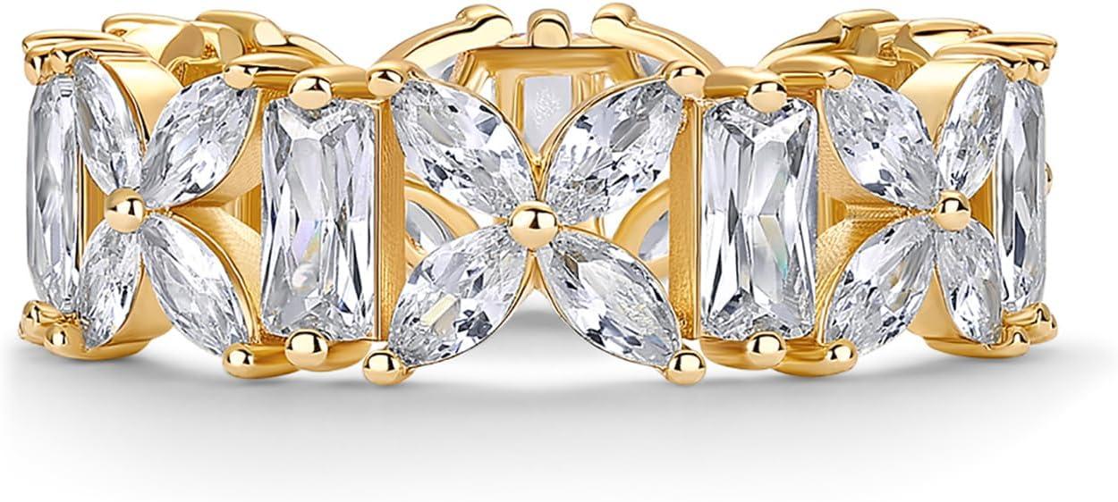 PAVOI 14K Gold Plated Marquise Eternity Rings for Women – Cubic Zirconia Chunky Stackable Wedding Ring – Statement Baguette CZ Gold Wedding Bands for Women – Promise Band Bridal Jewelry(Yellow Gold)