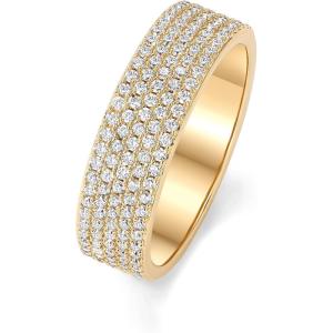 PAVOI 14K Gold Plated Cubic Zirconia Wide Eternity Statement Rings | CZ Stackable Wedding Band for Women(Yellow Gold)