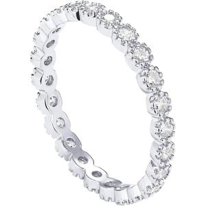 PAVOI 14K Gold Plated Eternity Ring | Stackable Cubic Zirconia Gold Band Ring | Dainty Diamond-Inspired Womens Wedding Jewelry(White Gold)