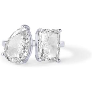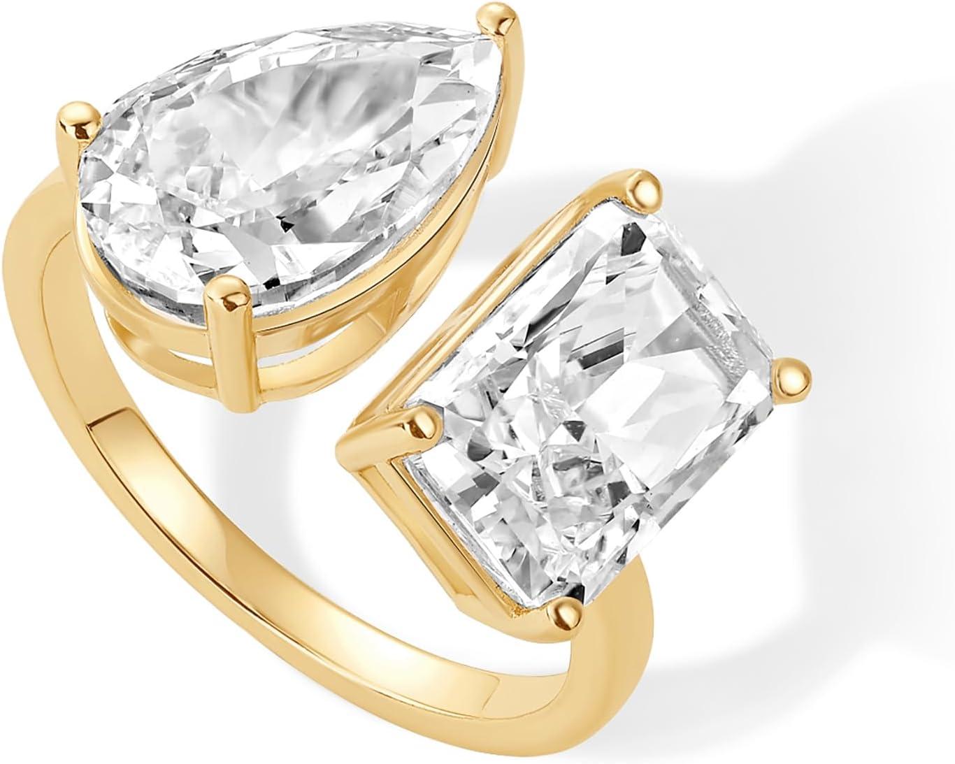 PAVOI 14K Gold Plated Toi Et Moi Radiant-Cut Pear-Shaped Cubic Zirconia Fake Wedding Engagement Ring for Women – Statement Promise Ring(White Gold)
