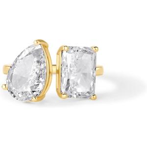 PAVOI 14K Gold Plated Toi Et Moi Radiant-Cut Pear-Shaped Cubic Zirconia Fake Wedding Engagement Ring for Women – Statement Promise Ring(Yellow Gold)