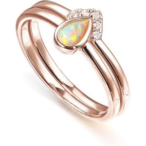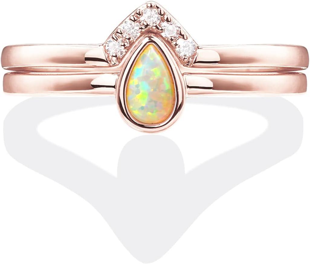 PAVOI 14K Gold Plated Stacking Rings for Women | Classy Design with Sparkling Cubic Zirconia Crystals & Opal | Everyday Jewelry(Rose Gold)