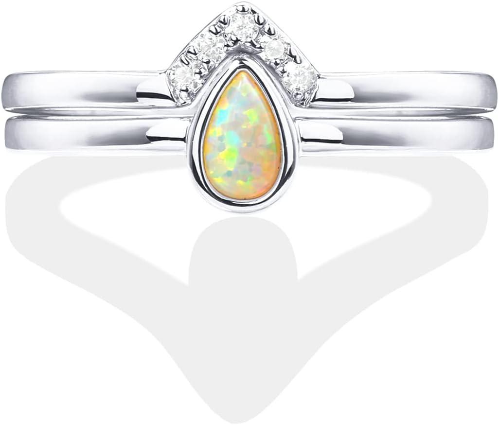 PAVOI 14K Gold Plated Stacking Rings for Women | Classy Design with Sparkling Cubic Zirconia Crystals & Opal | Everyday Jewelry(White Gold)