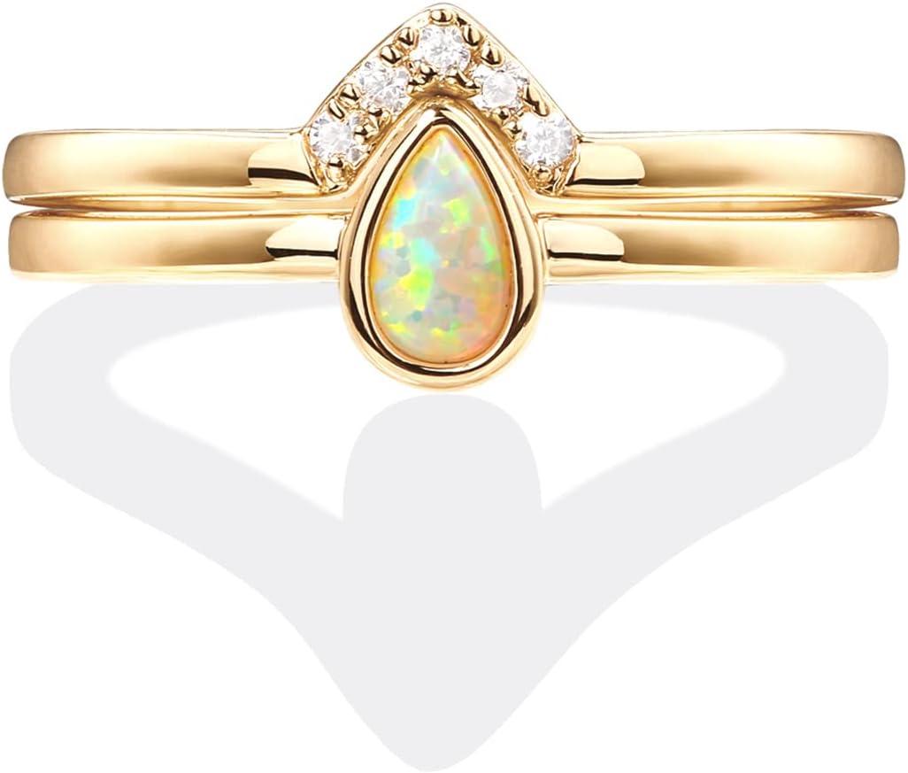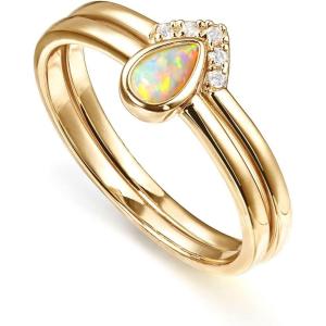 PAVOI 14K Gold Plated Stacking Rings for Women | Classy Design with Sparkling Cubic Zirconia Crystals & Opal | Everyday Jewelry(Yellow Gold)