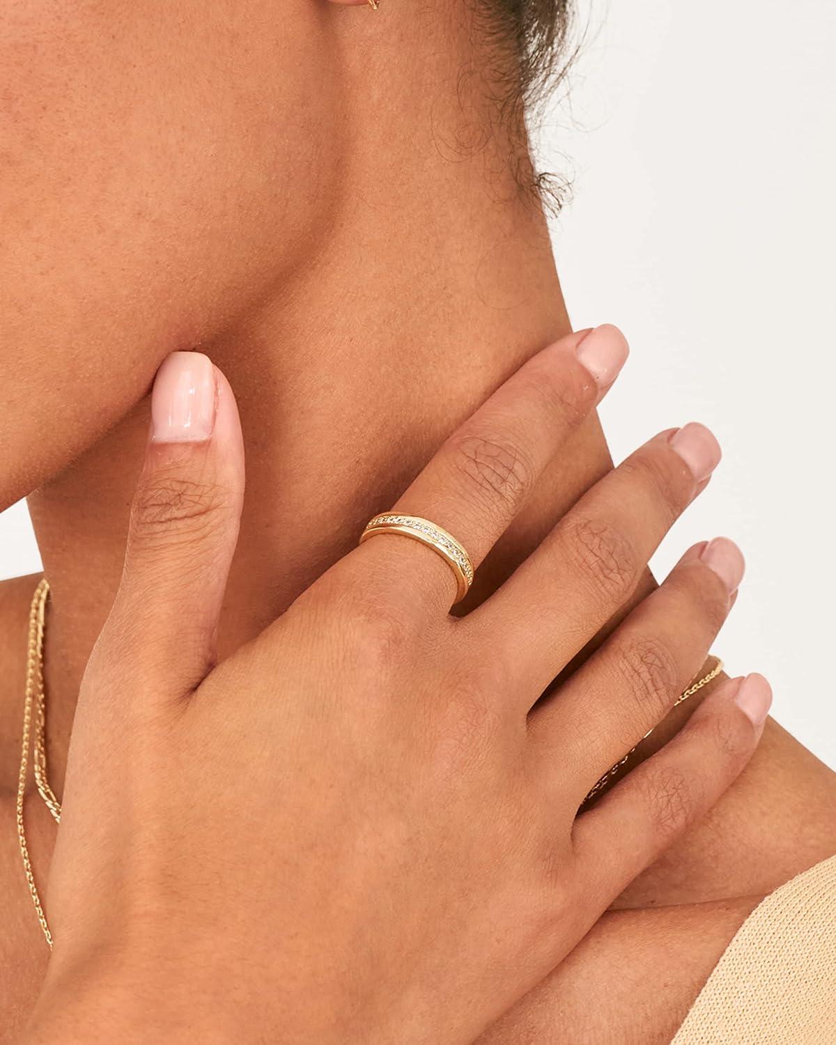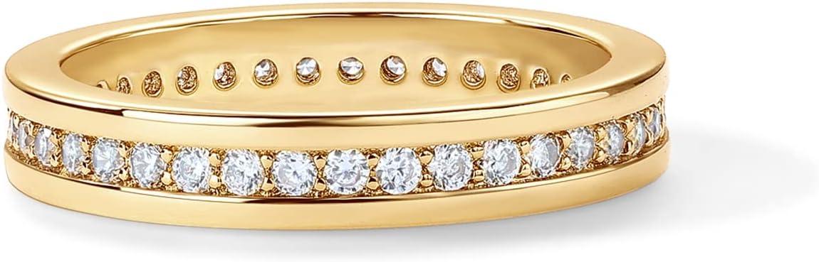 PAVOI 18K Gold Plated Stacking Tiny Cubic Zirconia Band | Eternity Rings for Women | Thumb Ring(Yellow Gold)